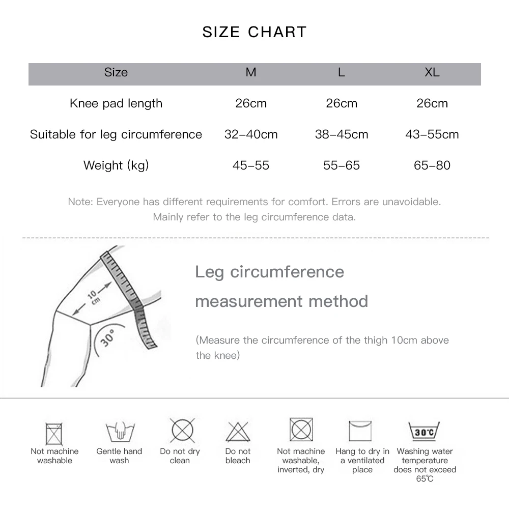 Adecuado para circunferencia de la pierna M:32-40CM L:38-45CM XL:43-55CM