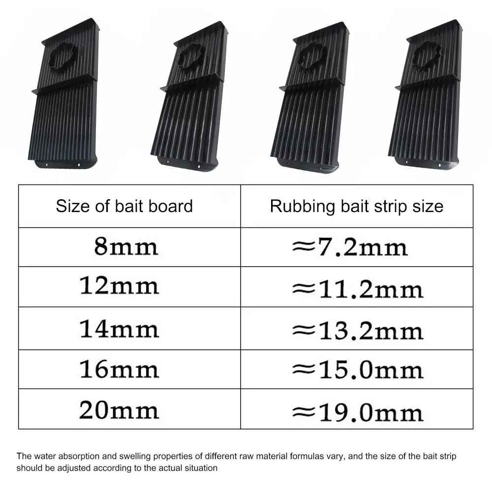 Material del producto: PP Color del producto: Negro Tamaño de la base: 30*15cm/11,8*5.9in Tamaño de la tabla de lavar a mano: 15,5*15cm/6,1*5.9in Tamaño del agujero del Cebo: 8mm/0,31 in, 12mm/0,47 in, 14mm/0,55 in, 16mm/0,63 in-El rodillo Boilie está hecho de material PP. Cómodo de usar. -Es liso, pulido y no es fácil de romper. -Es una herramienta para hacer el cebo para satisfacer sus necesidades de pesca. El paquete incluye: 1 rodillo Boilie de pesca de carpa.