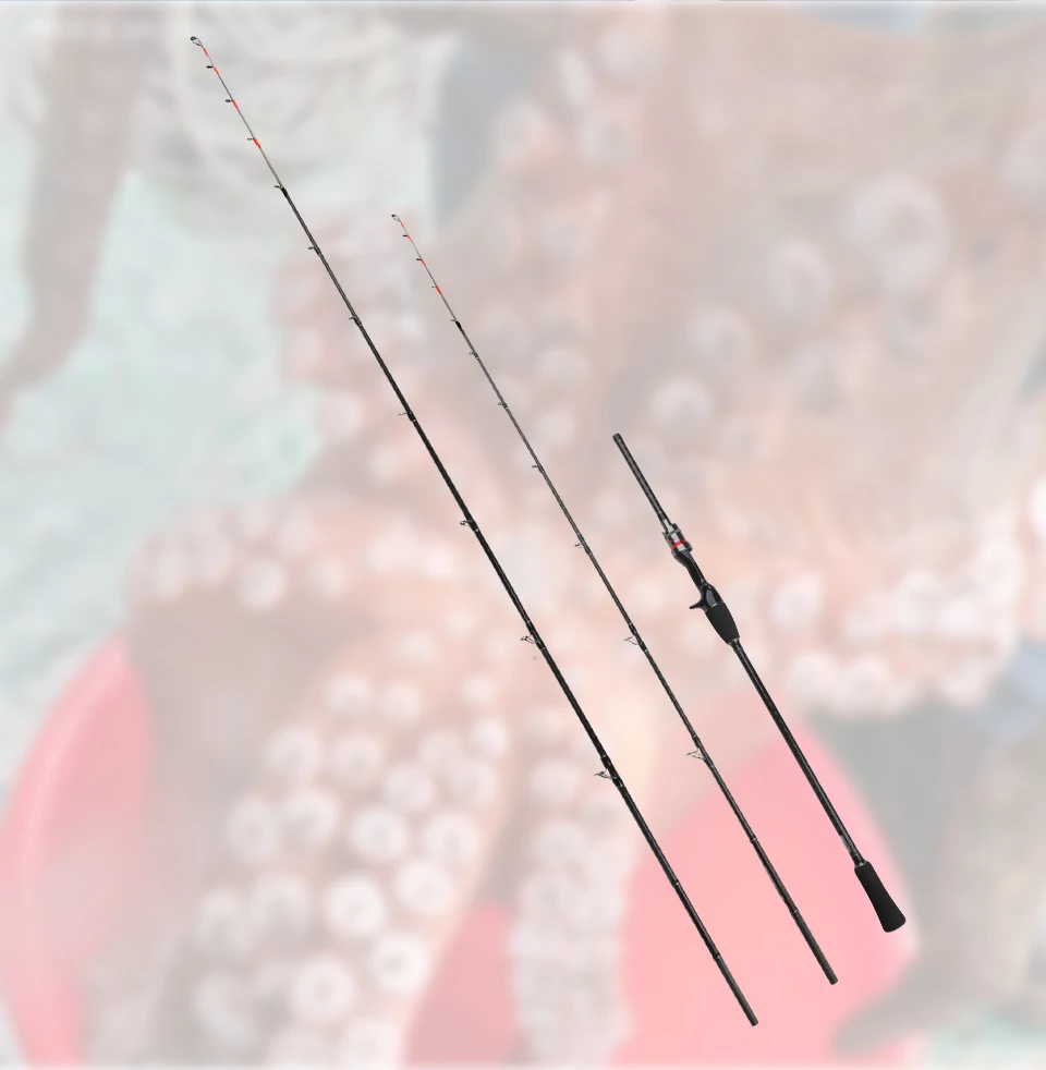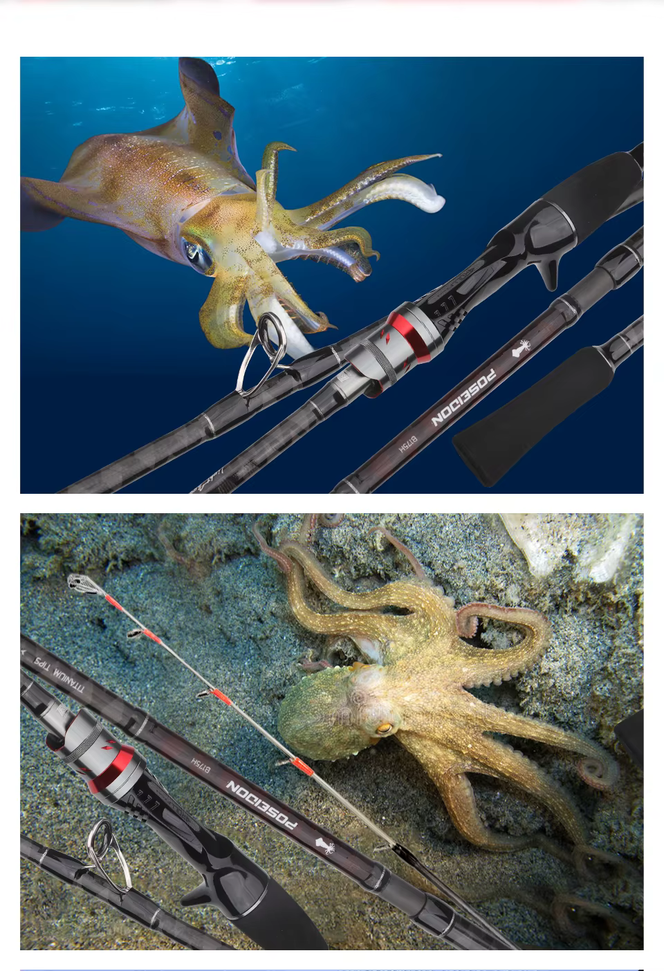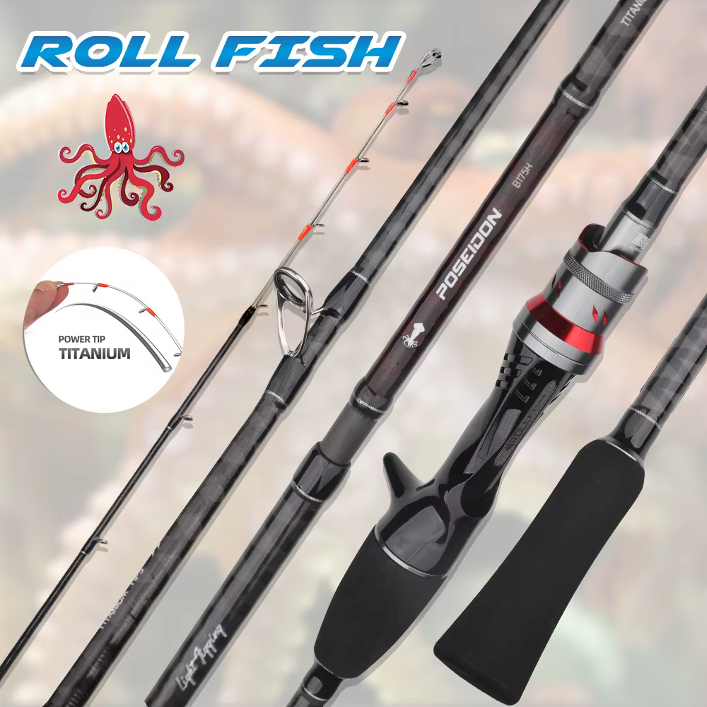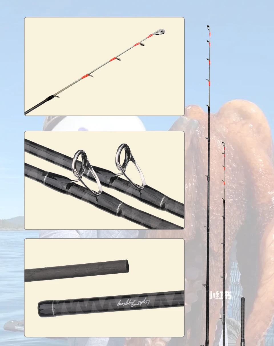 ROLLFISH 1,55/1,75 m puntas dobles de titanio pulpo calamar cuttle caña de pescar de fibra de carbono 9:1/8:2 acción barco de agua salada caña de Jigging