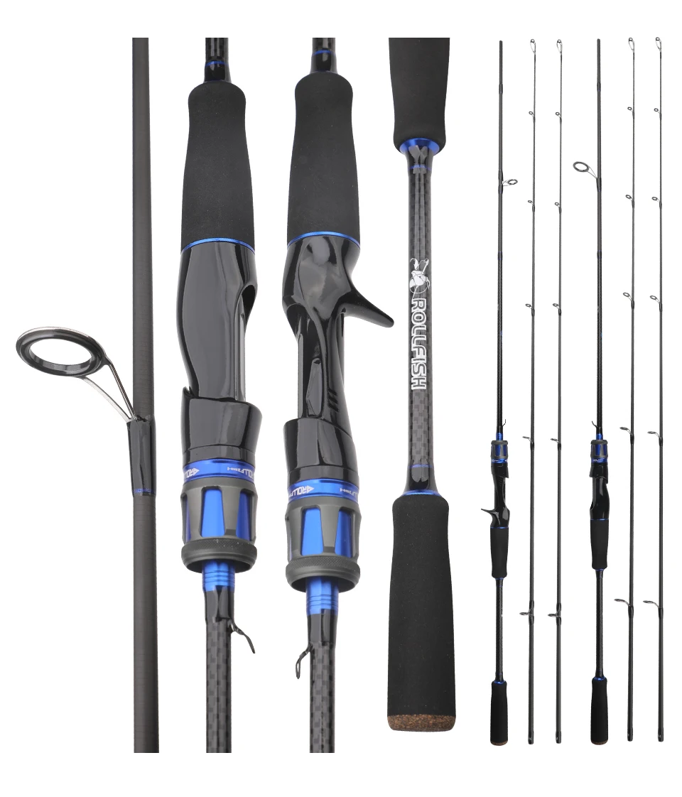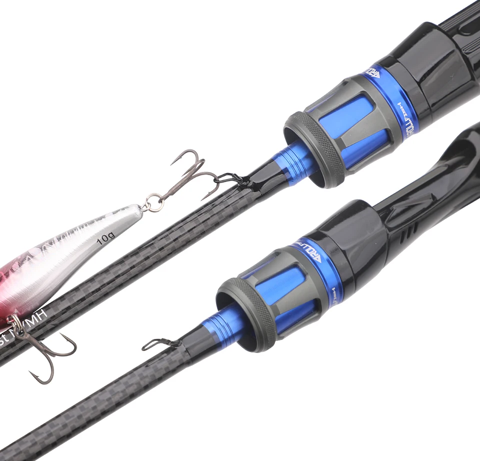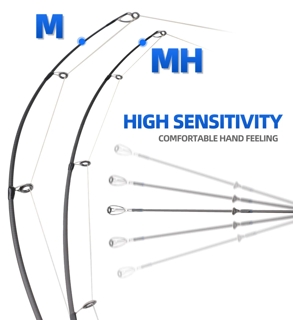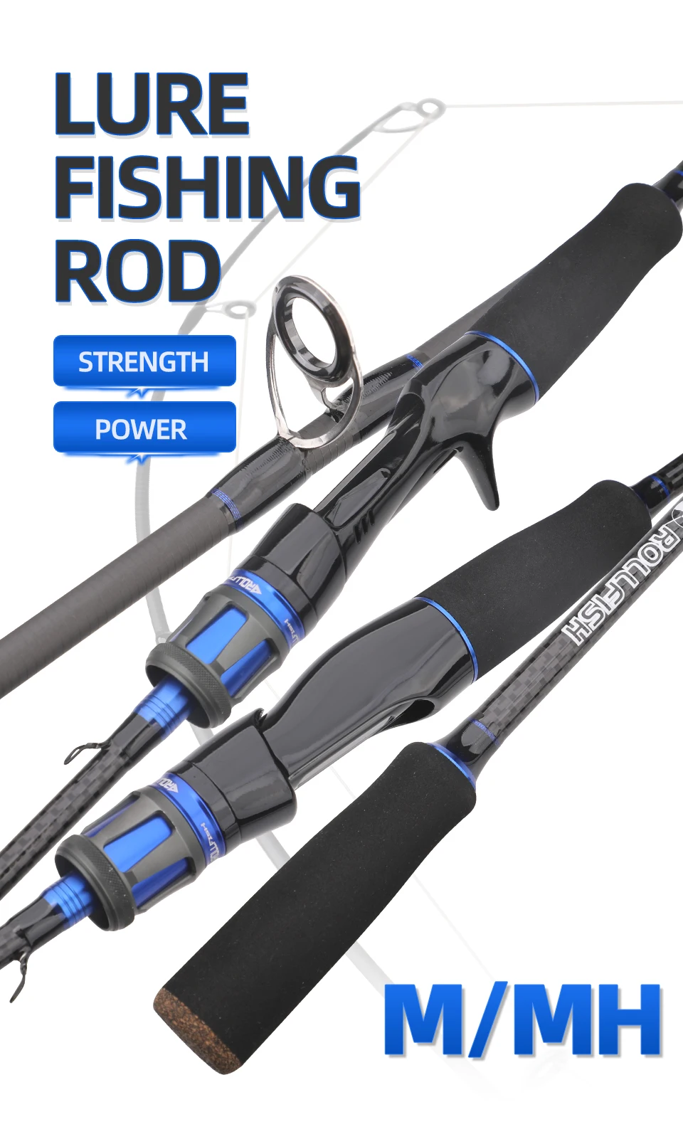ROLLFISH 2 puntas de potencia M/MH, caña de pescar giratoria de fibra de carbono con señuelo, caña de pescar de lubina de agua dulce y salada, acción rápida