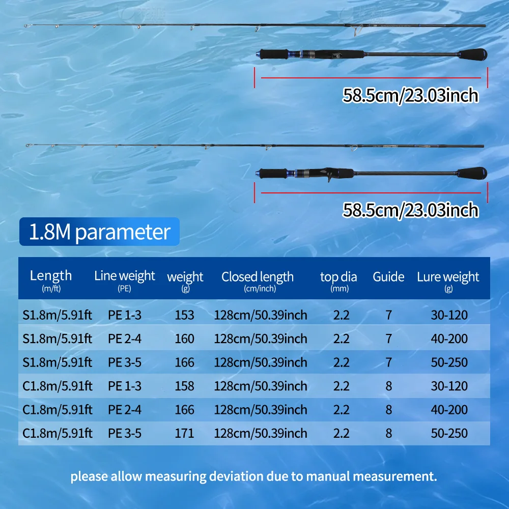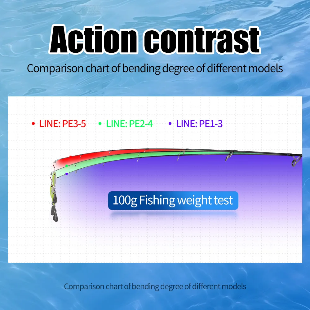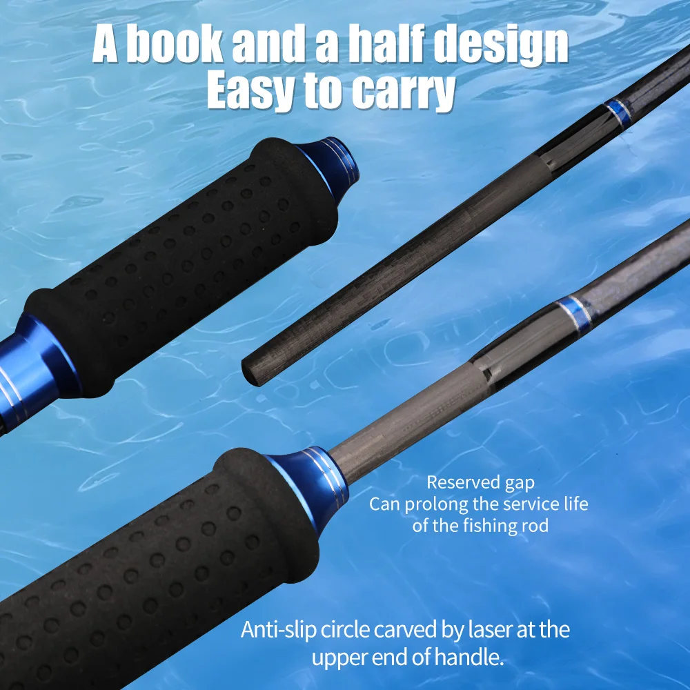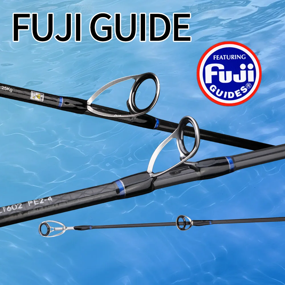 ROLLFISH-caña de Jigging rápida, guías Fuji y asiento de carrete, caña de pescar de agua salada de fibra de carbono para atún de aguas profundas + hilo de pescar de 100m