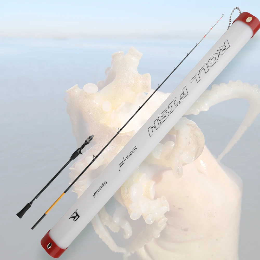 ROLLFISH-caña de pescar de calamar con punta de titanio, acción de 1,75 M, 8:2 de fibra de carbono, caña de Jigging de agua salada, incluye bolsa de almacenamiento para caña