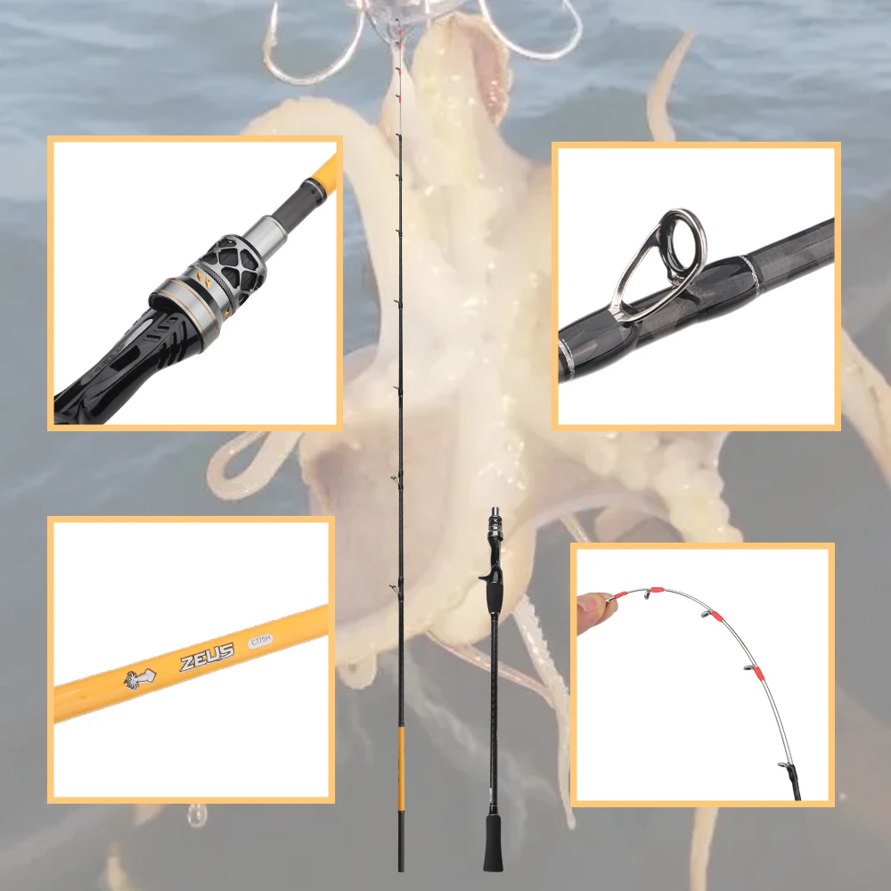 ROLLFISH-caña de pescar de calamar con punta de titanio, acción de 1,75 M/5,74 pies, 8:2 cartuchera de pulpo, fundición de fibra de carbono, caña de Jigging de agua salada