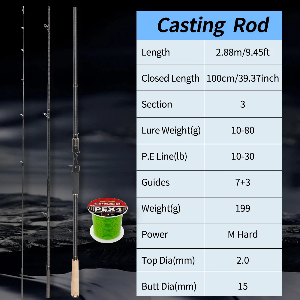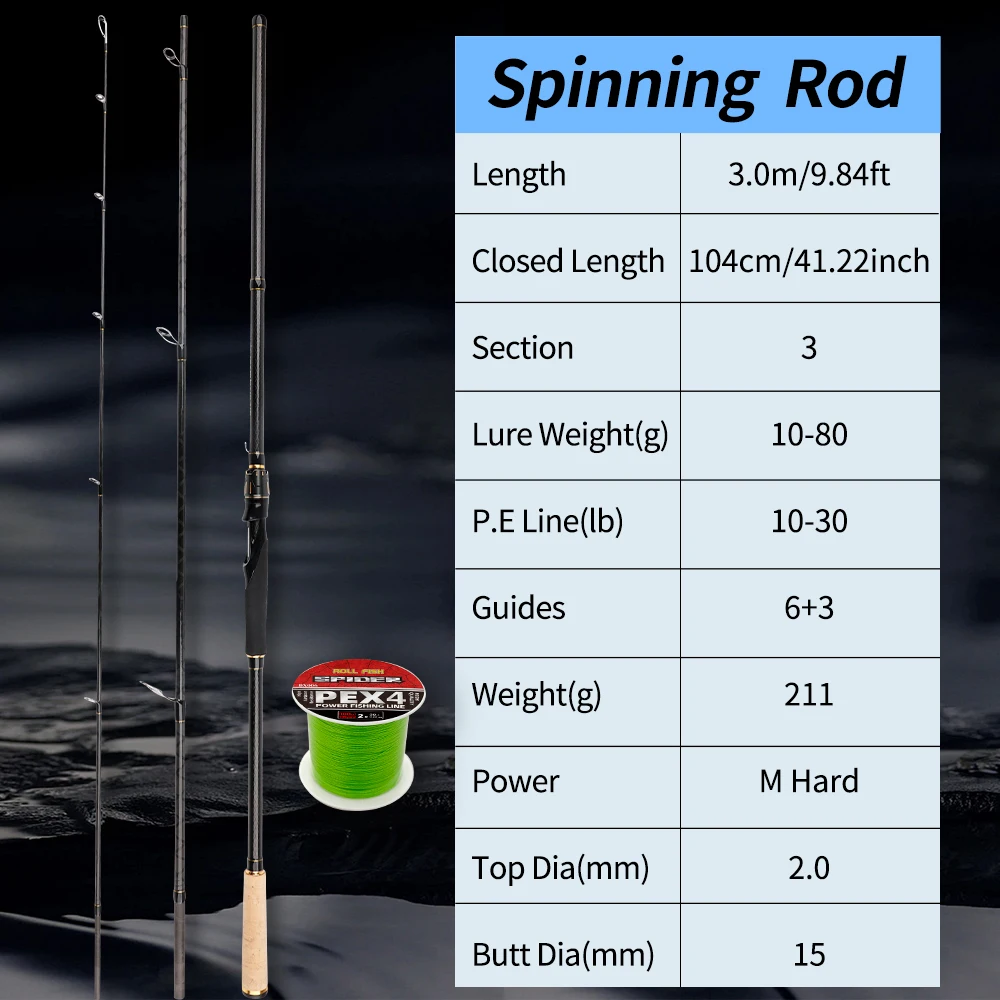 ROLLFISH-caña de pescar giratoria de fibra de carbono, lanzamiento de larga distancia, regalo de agua dulce y salada de media potencia, línea de PE de 100 M