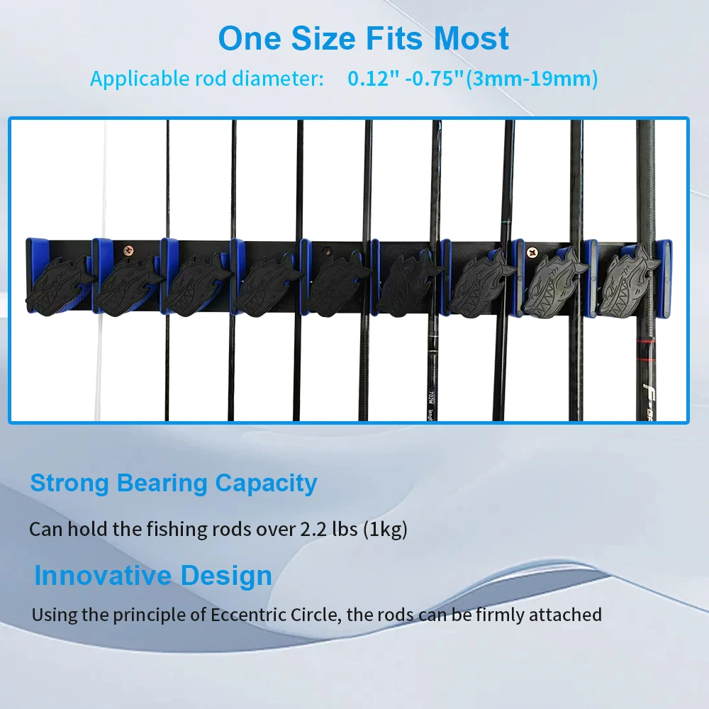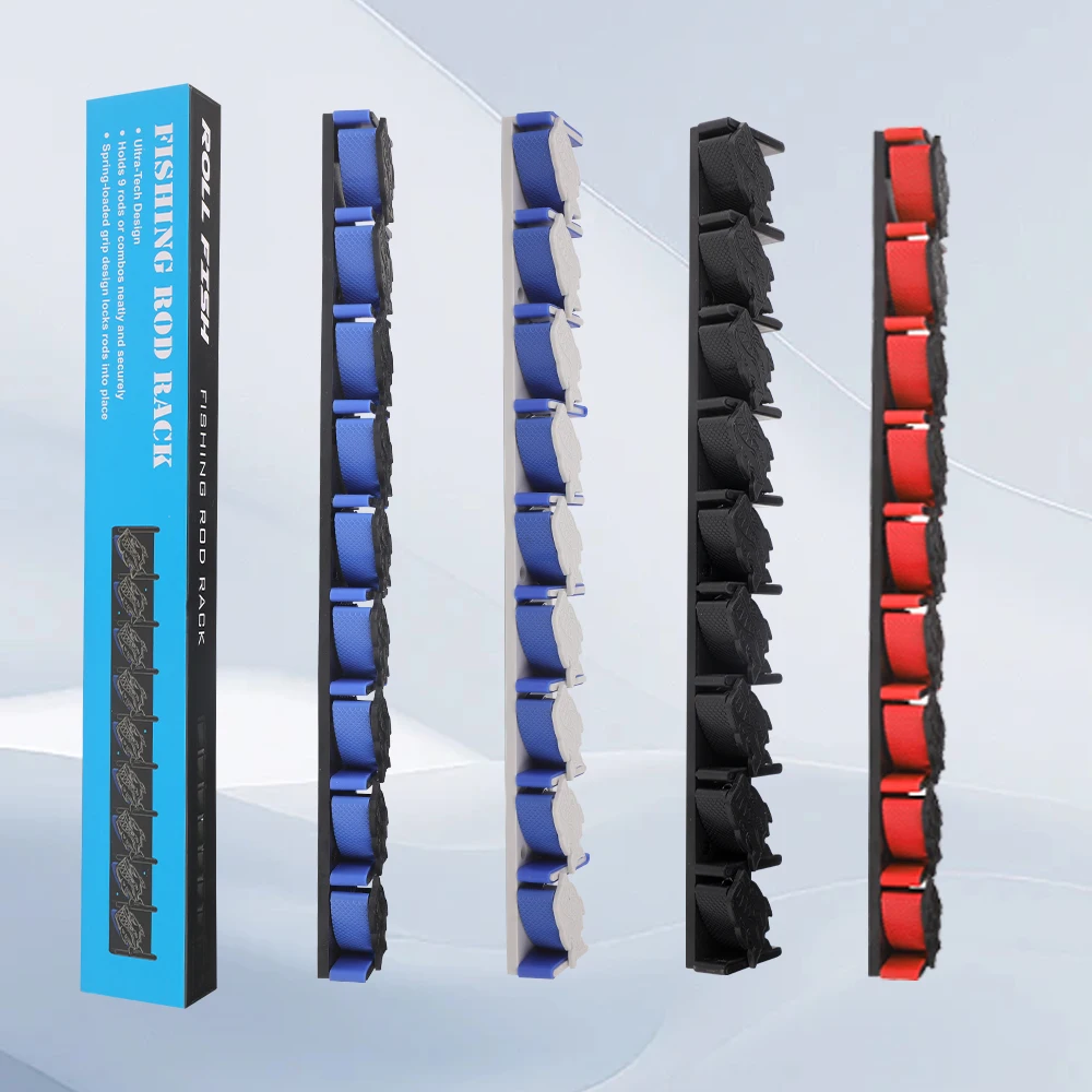 ROLLFISH-caña de pescar montada en la pared con 9 agujeros y estante para tacos de billar, estante Vertical y Horizonta, marco fijo para garaje y hogar
