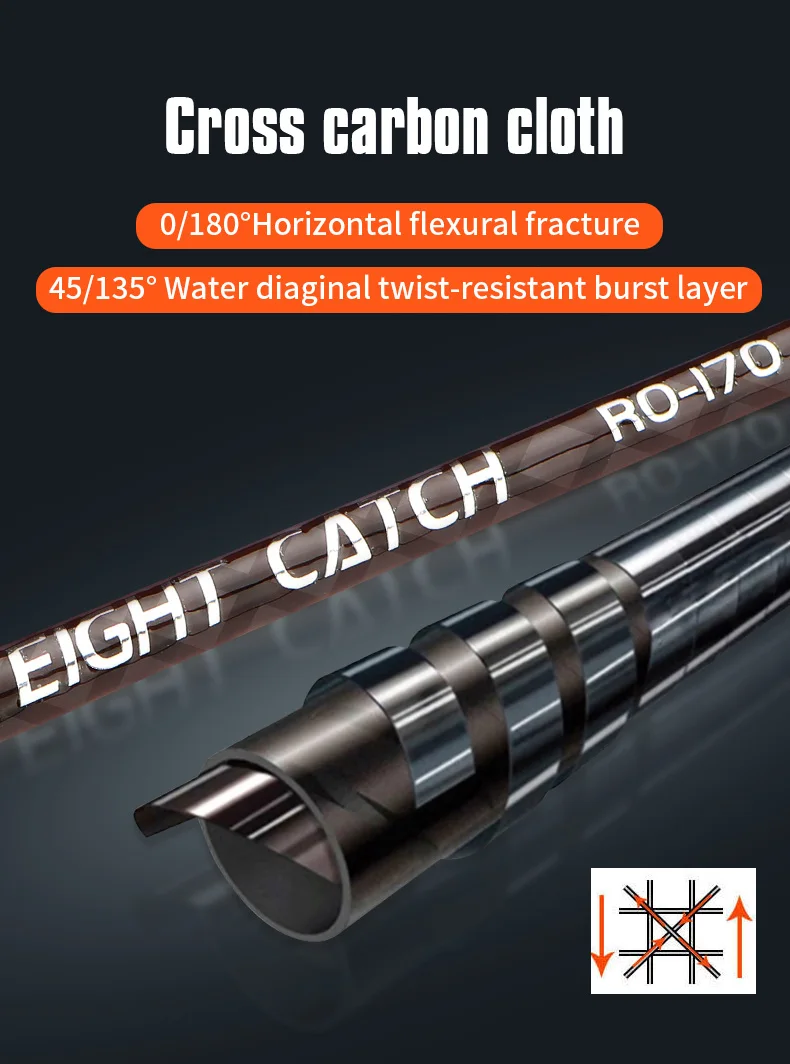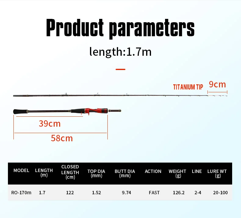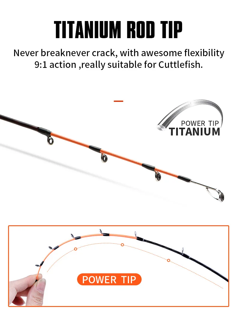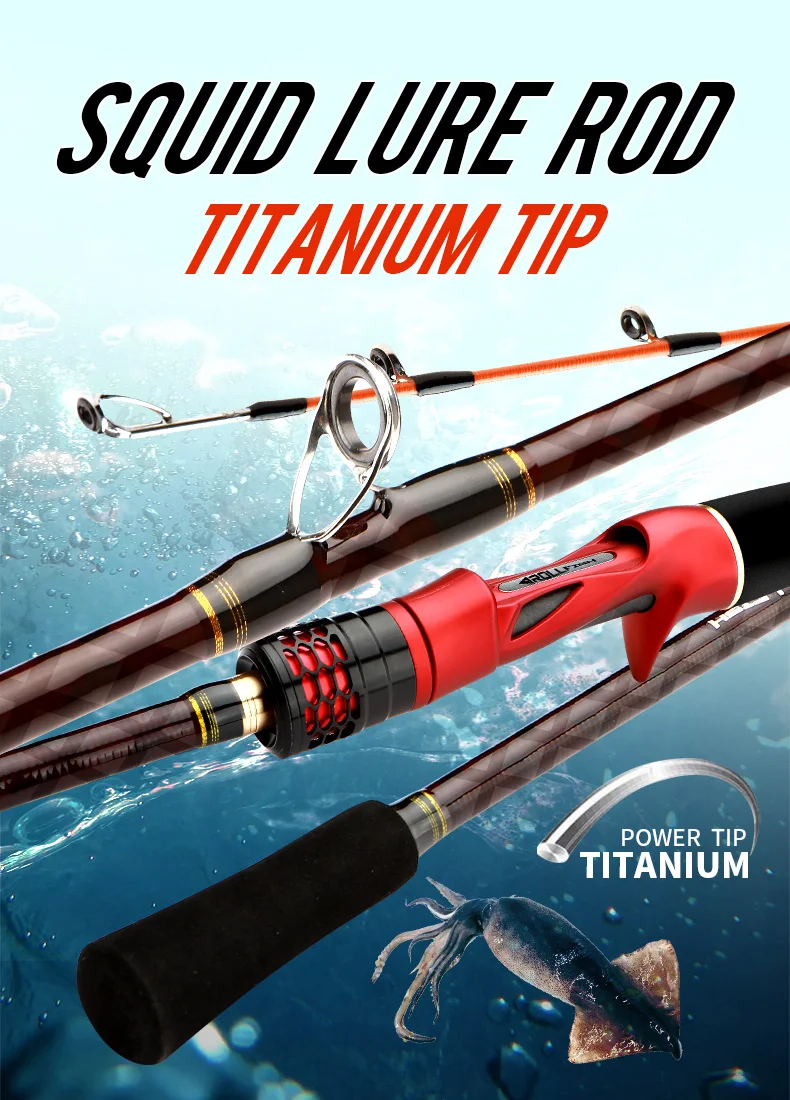 ROLLFISH-caña de pescar con punta de titanio, 1,7 M/5,57 pies, acción 8:2, sistema de guía en espiral, carbono, para barco de mar