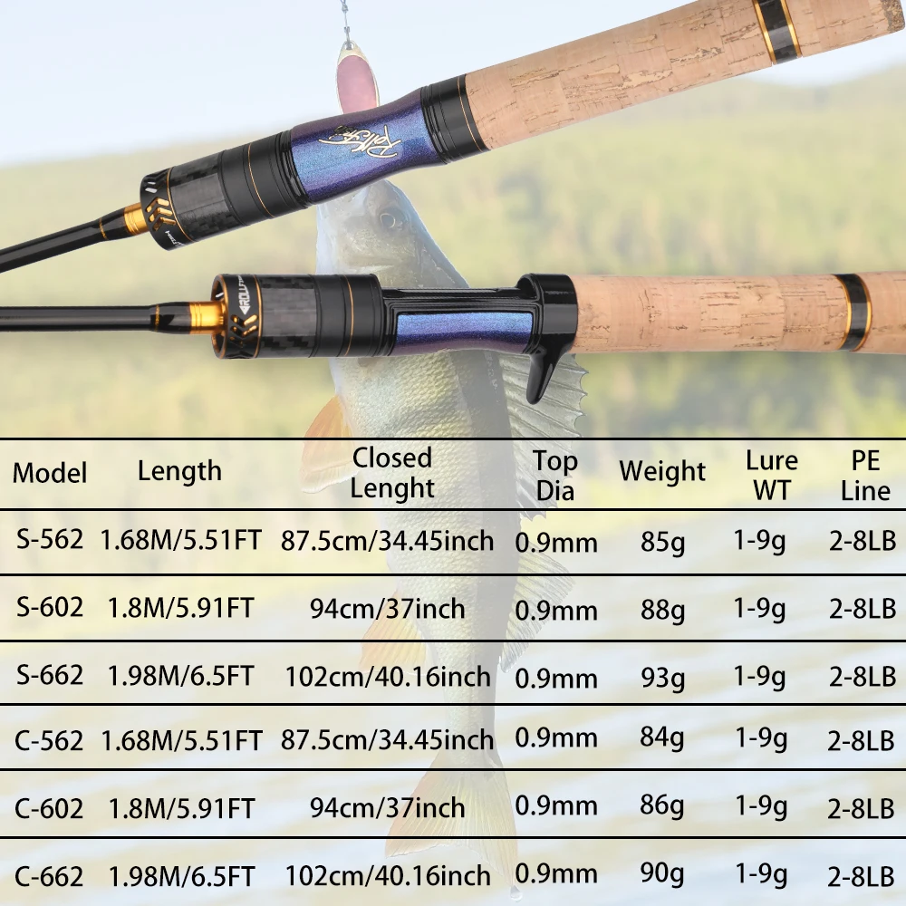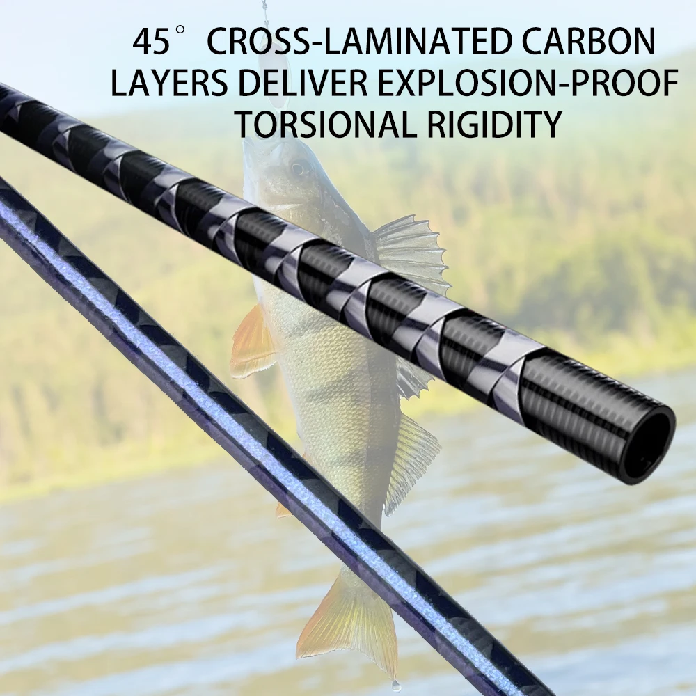 Caña de pescar de cuatro secciones, fabricada en fibra de carbono, muy sensible, adecuada para diversas áreas de aguas poco profundas.