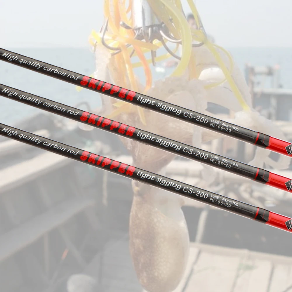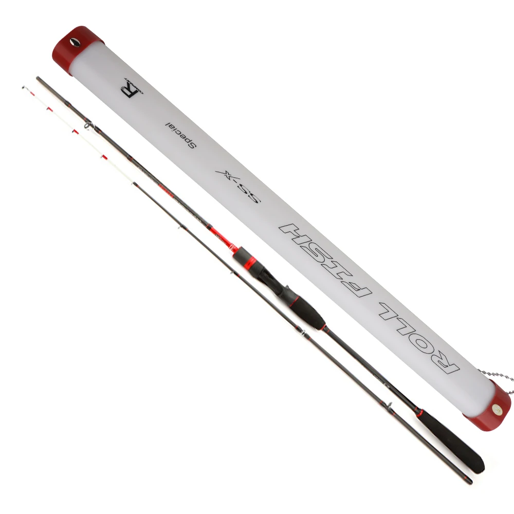 ROLLFISH-Guías giratorias de punta sólida de fibra de carbono, caña de pescar de sepia de pulpo, barco de agua salada, caña de Jigging ligera, acción 7:3 + bolsa de caña