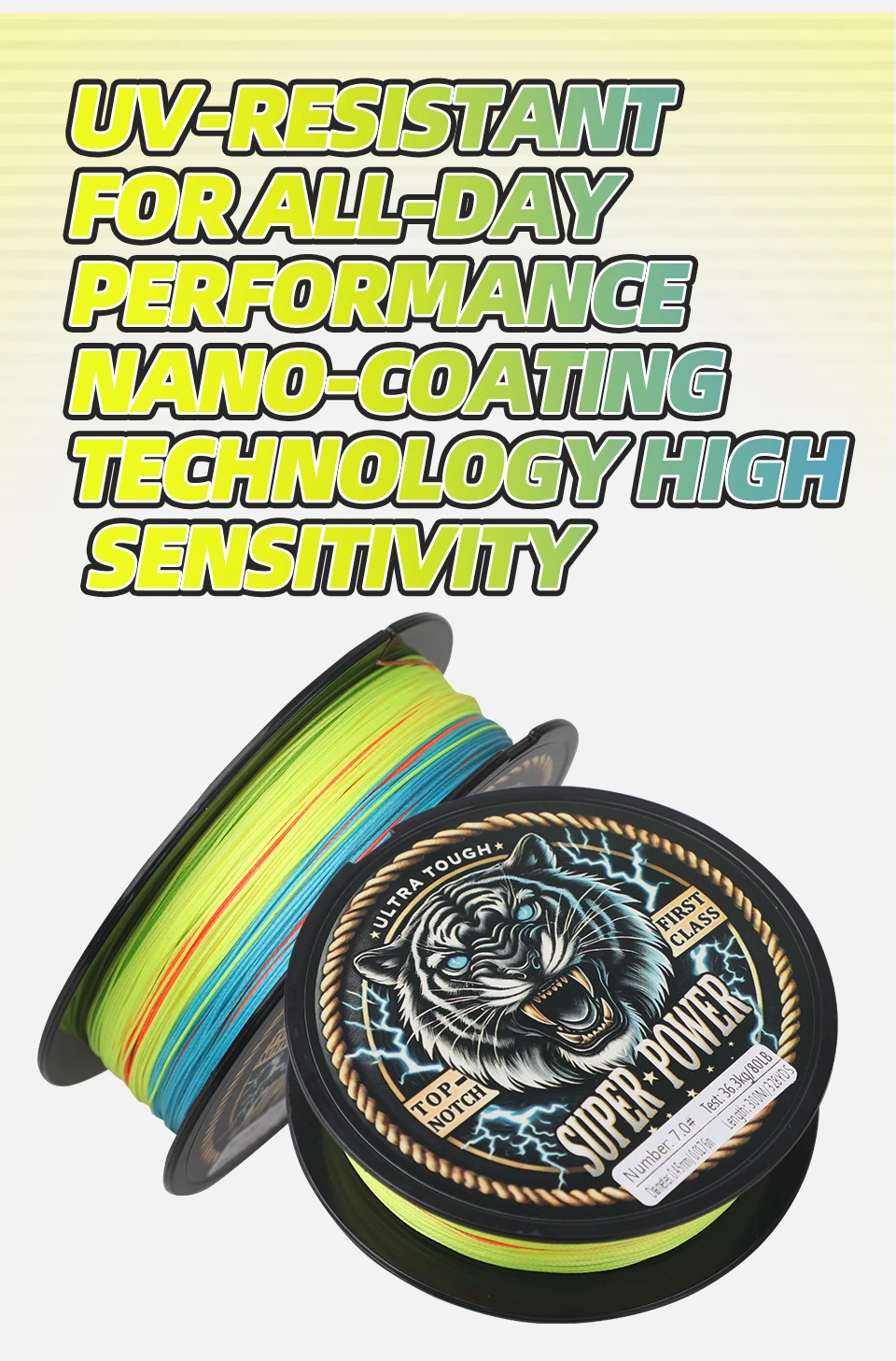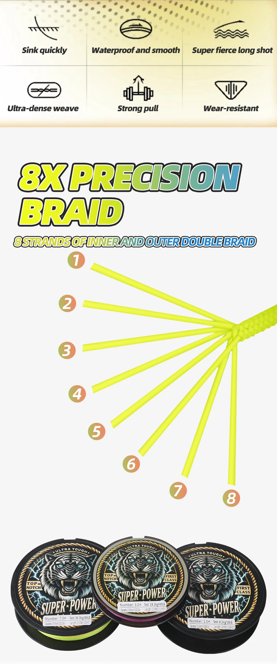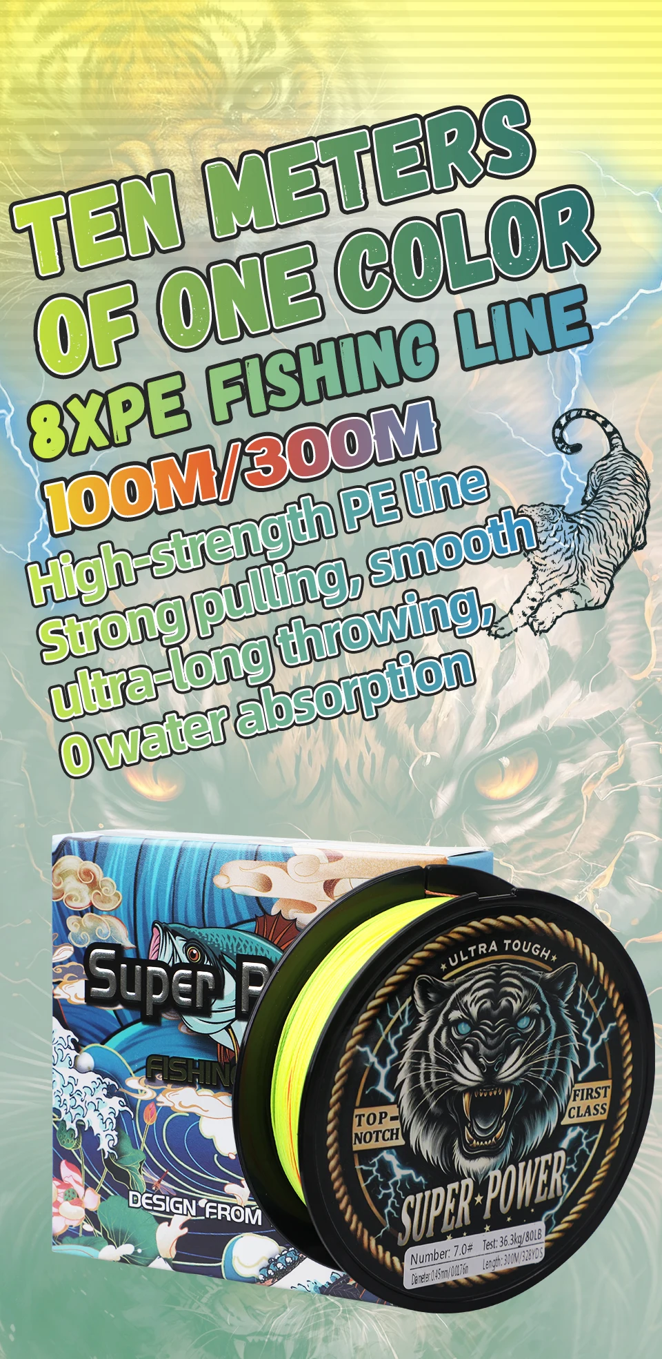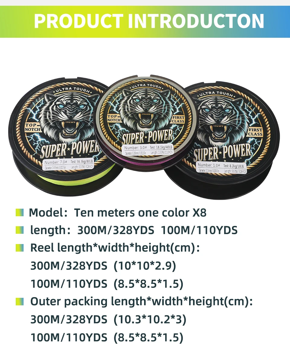 ROLLFISH Línea de pesca trenzada de PE de 8 hebras 300 m-Resistente 70-160 LB, cambio de color cada 10 m para juegos grandes, agua salada, en alta mar,