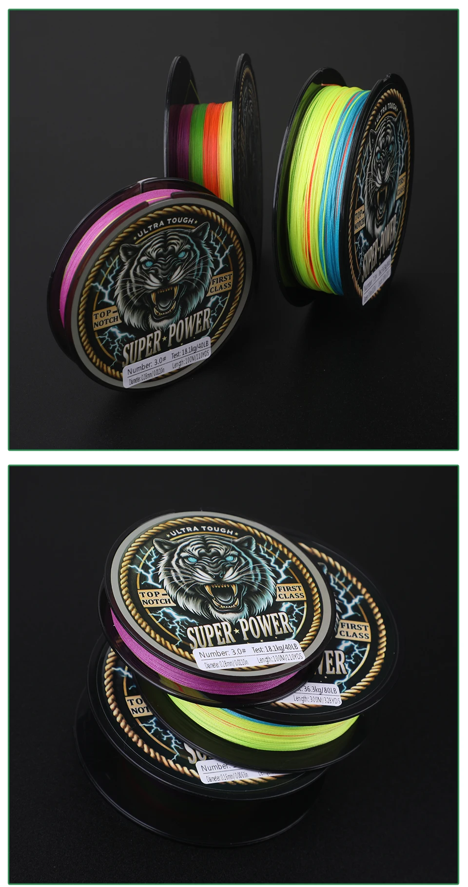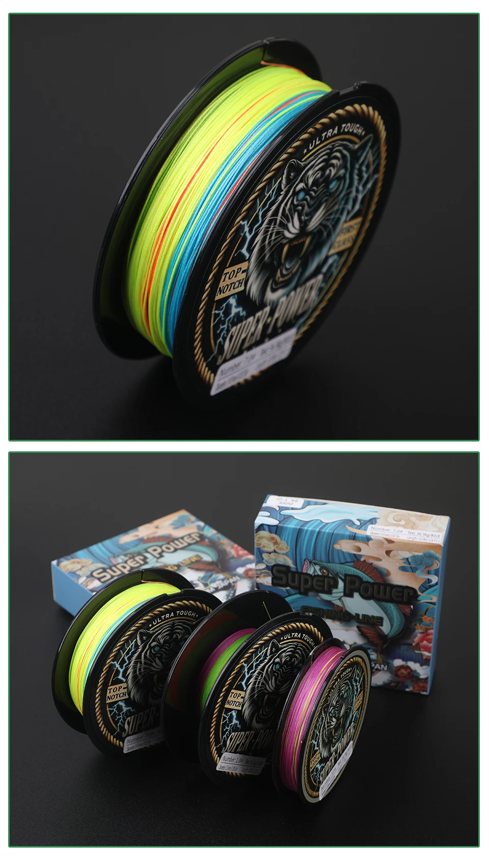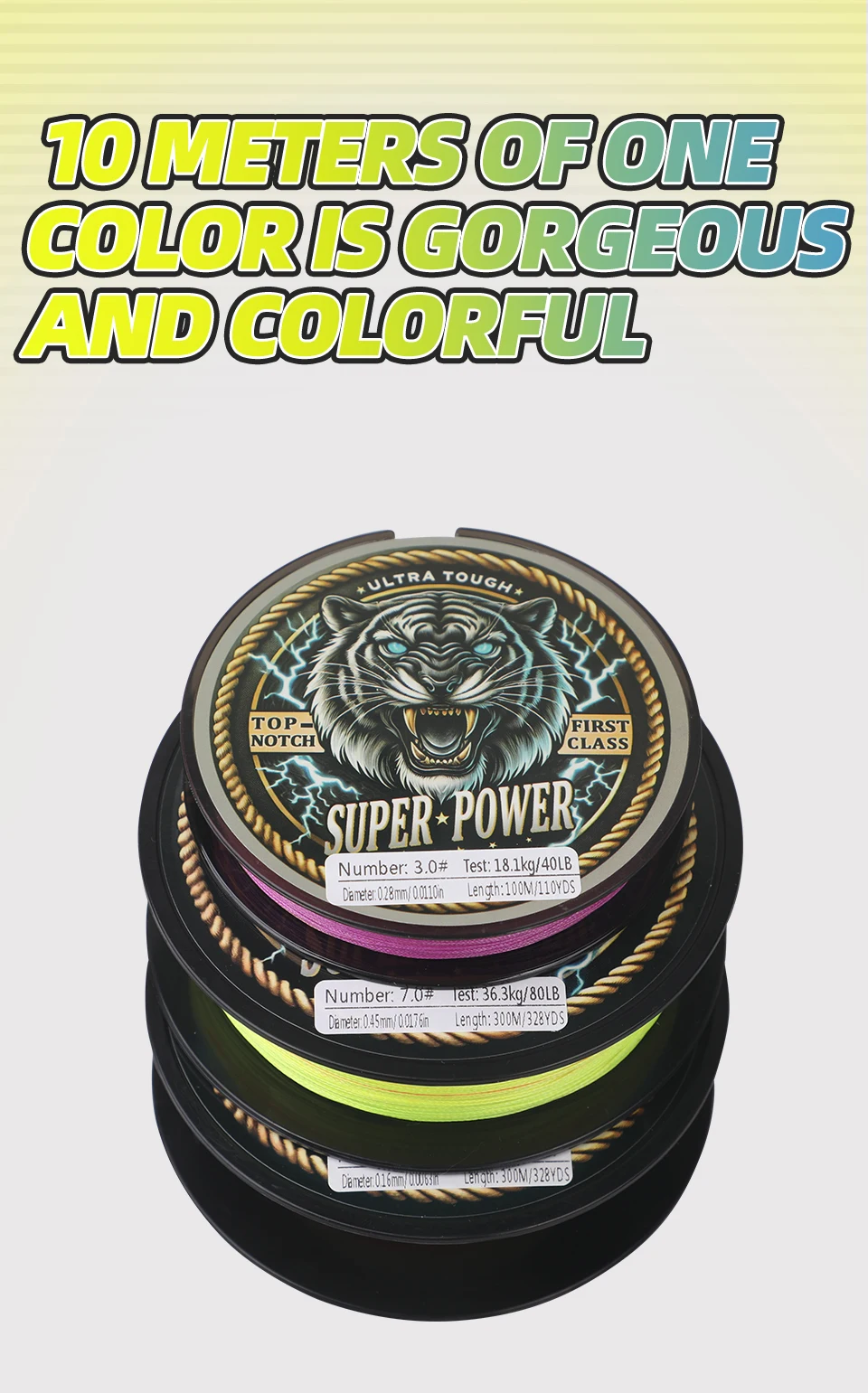 ROLLFISH Línea de pesca trenzada de PE de 8 hebras 300 m-Resistente 70-160 LB, cambio de color cada 10 m para juegos grandes, agua salada, en alta mar,