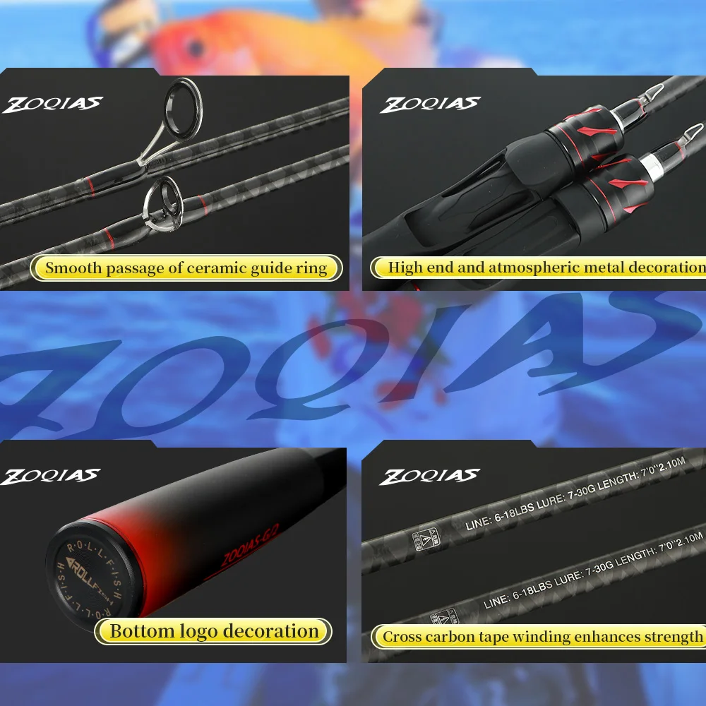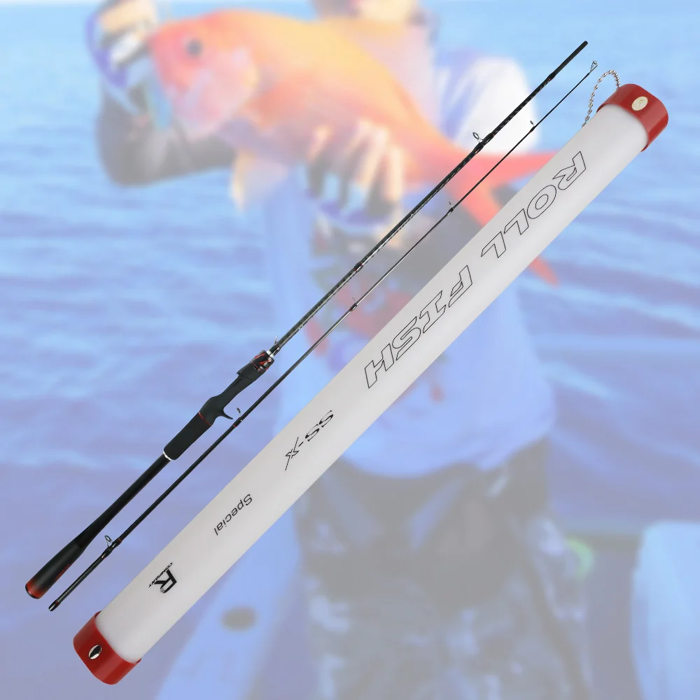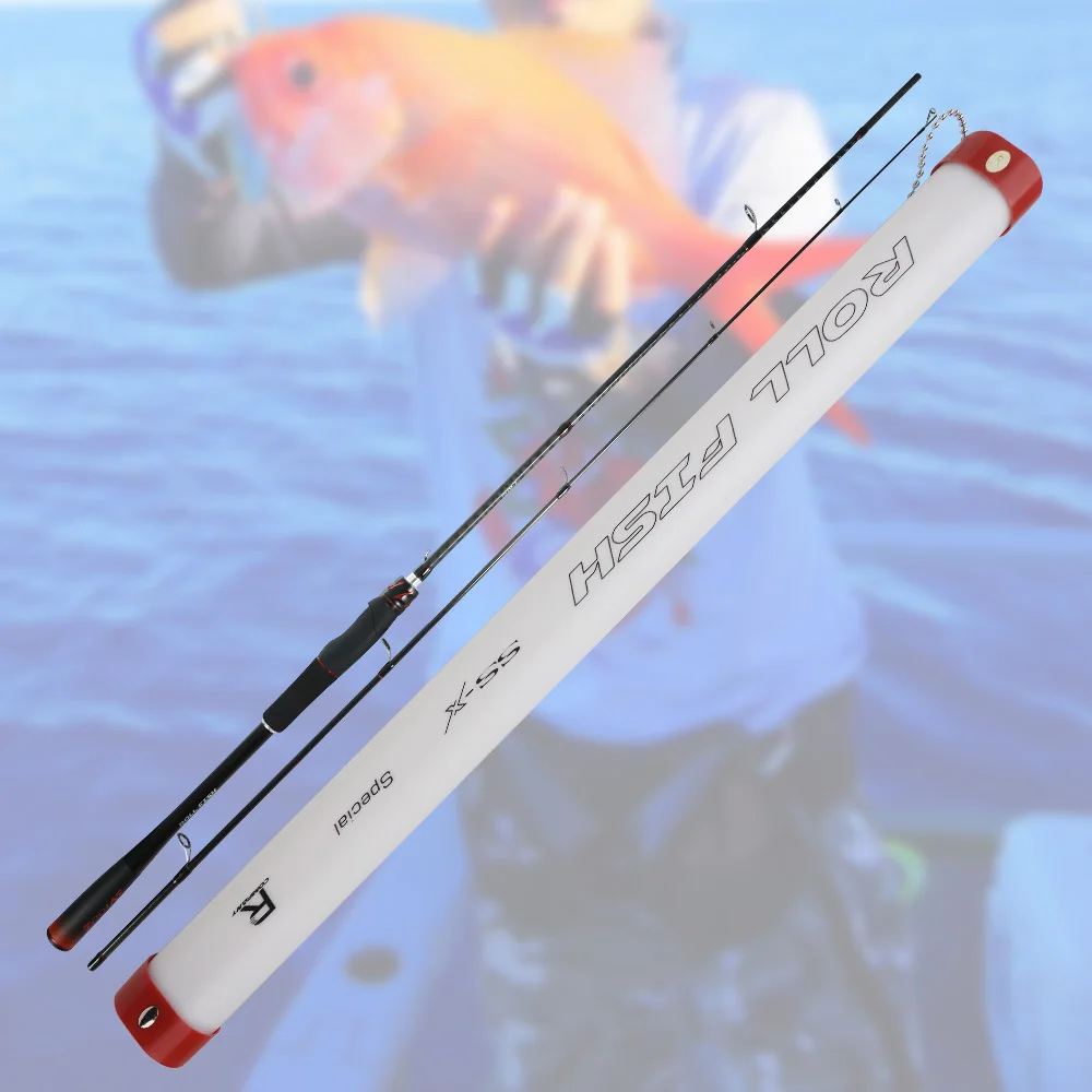 ROLLFISH Power M caña de pescar giratoria de fibra de carbono, 1,8-2,7 M, caña de pescar de lubina de agua dulce y salada, acción rápida + RodBag