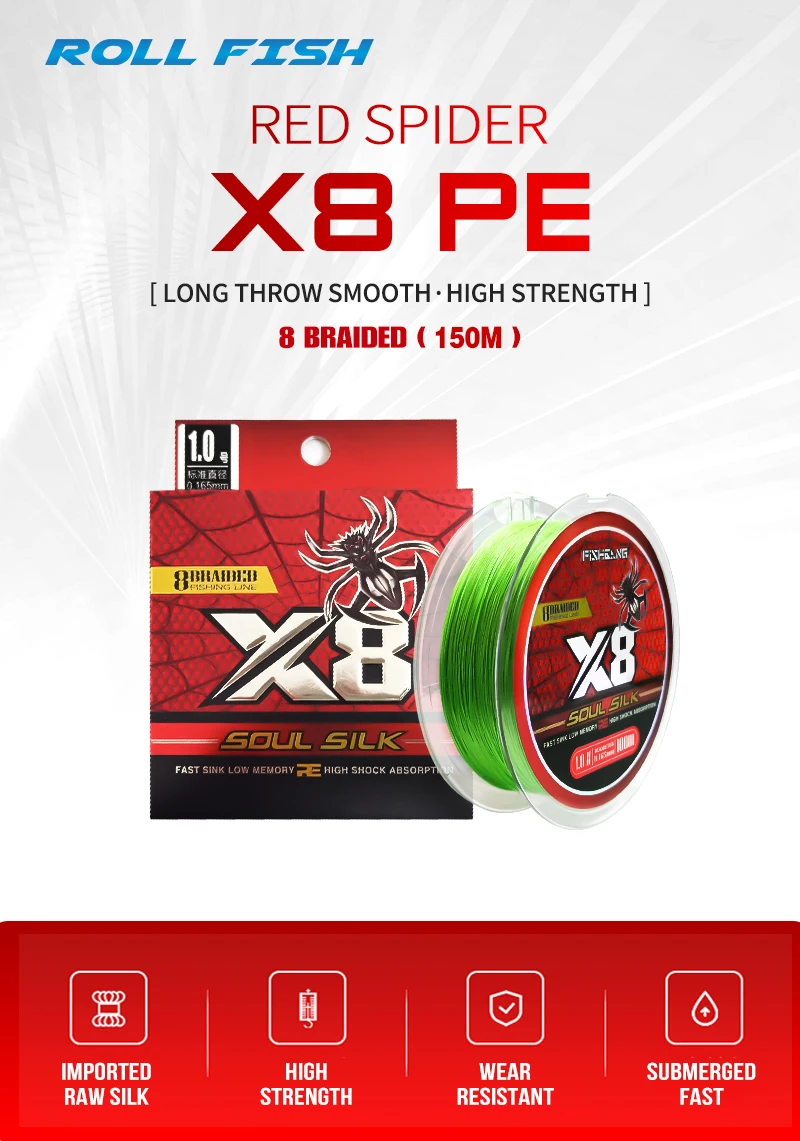 ROLLFISH-sedal de pesca de PE multifilamento trenzado, duradero, 8 hebras, 150M, para fundición larga en agua dulce y salada