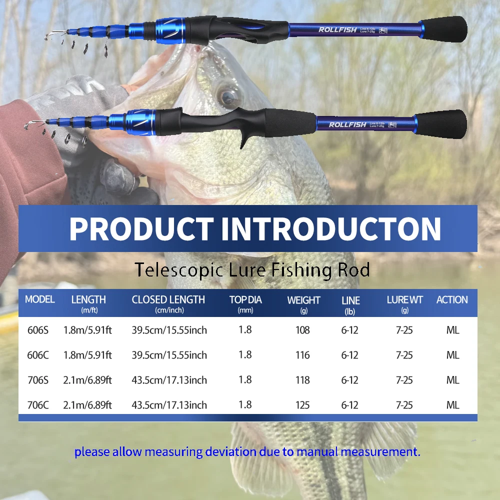 ROLLFISH Varilla telescópica de fibra de carbono - Jigging ligero de acción ML, agarre EVA para agua salada y agua dulce