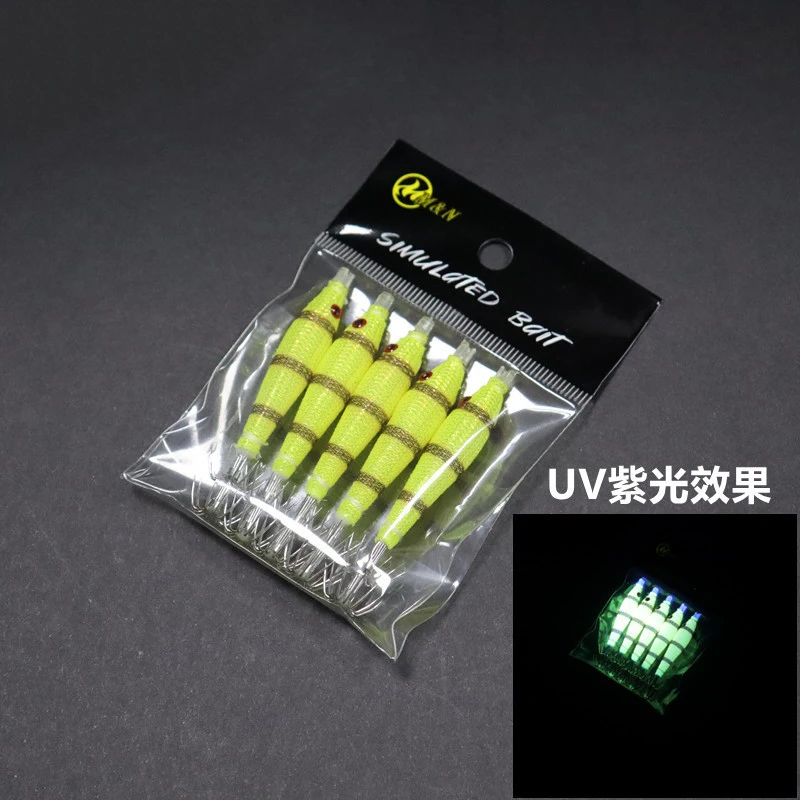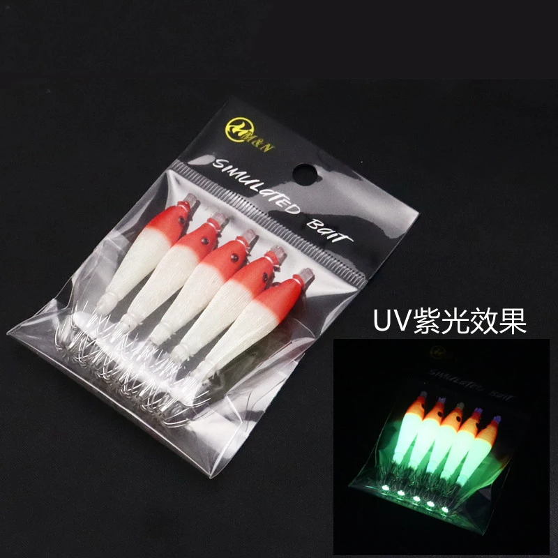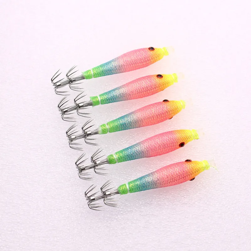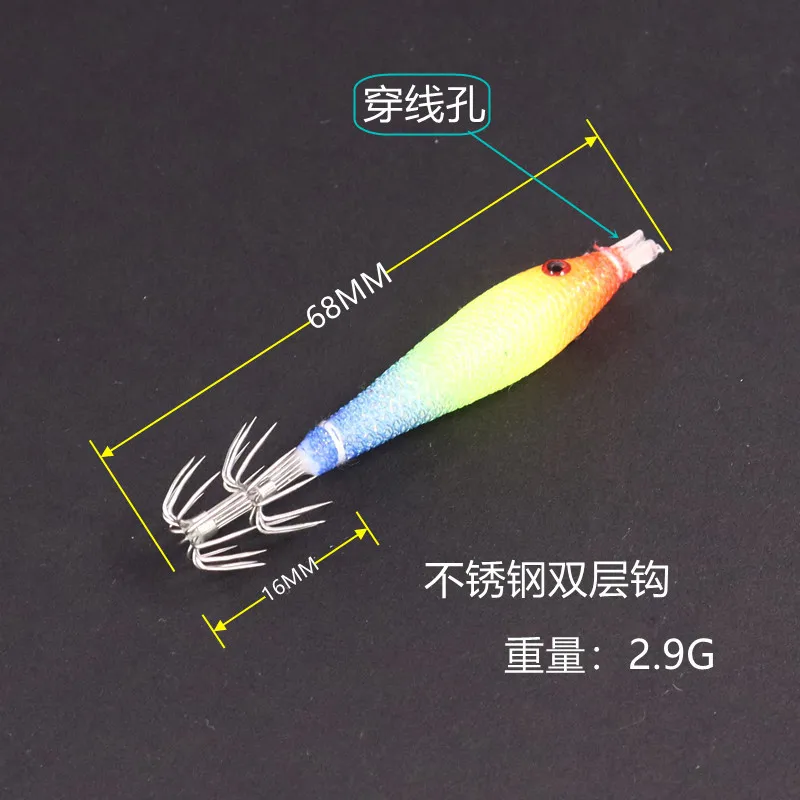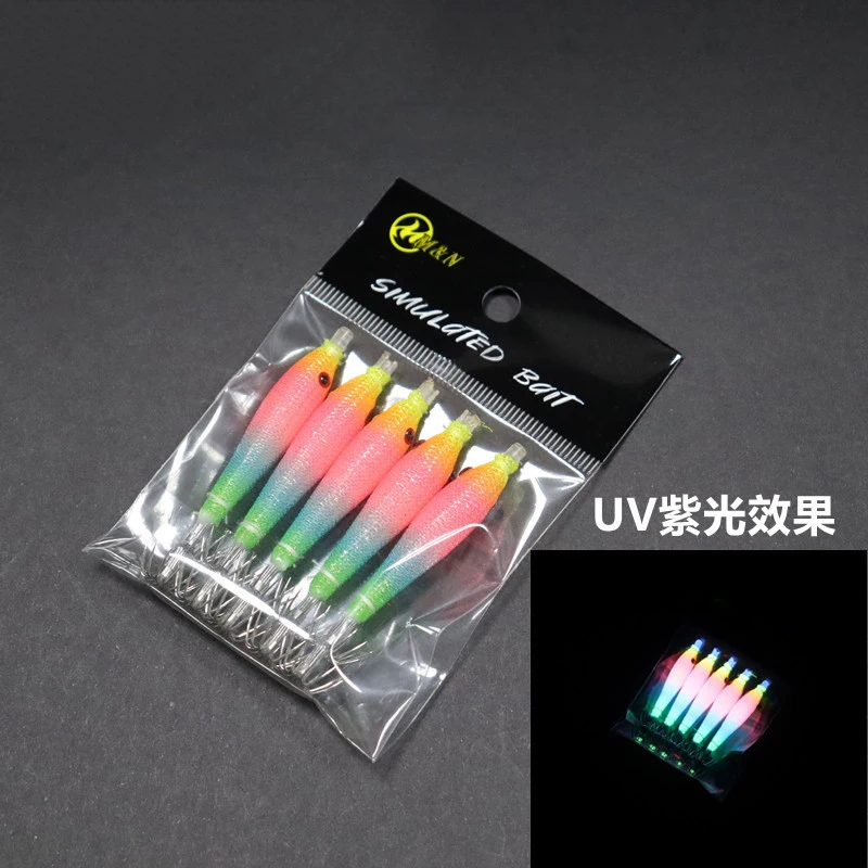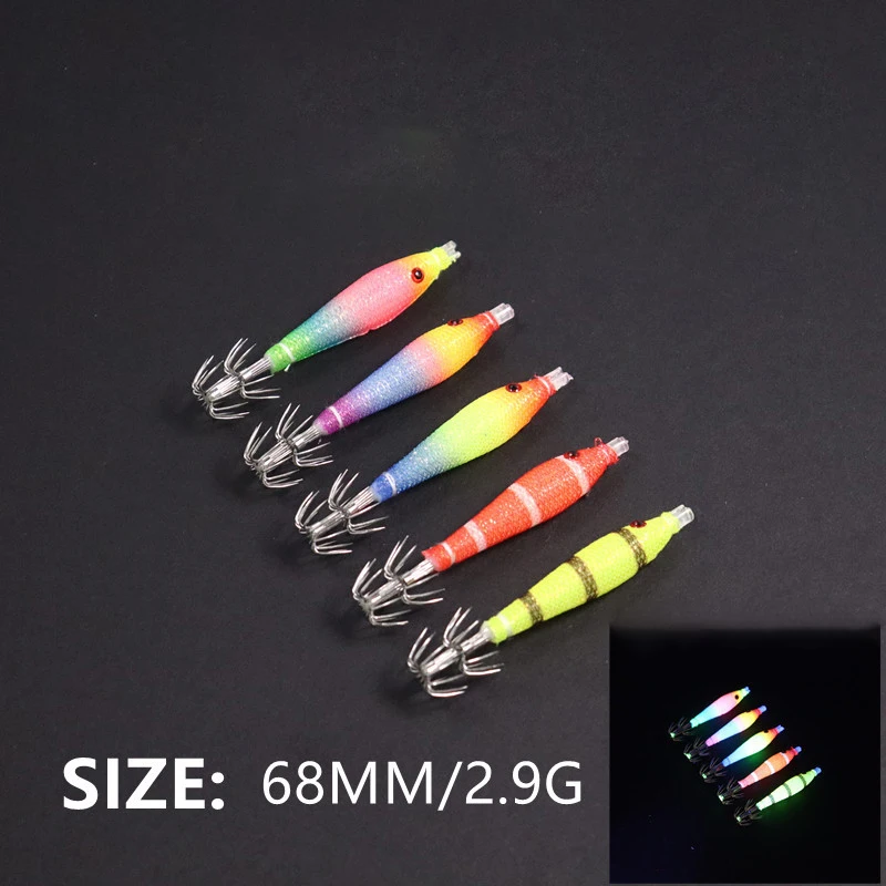 Rollo de tela de 68mm, tubo de soplado UV luminoso, plantilla de pulpo para pesca, cebo de madera para camarones, anzuelo de calamar, anzuelo de explosión para pesca, 10 Uds.
