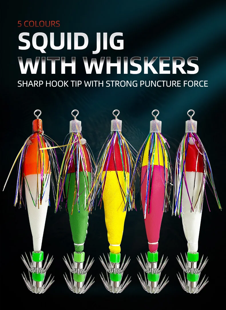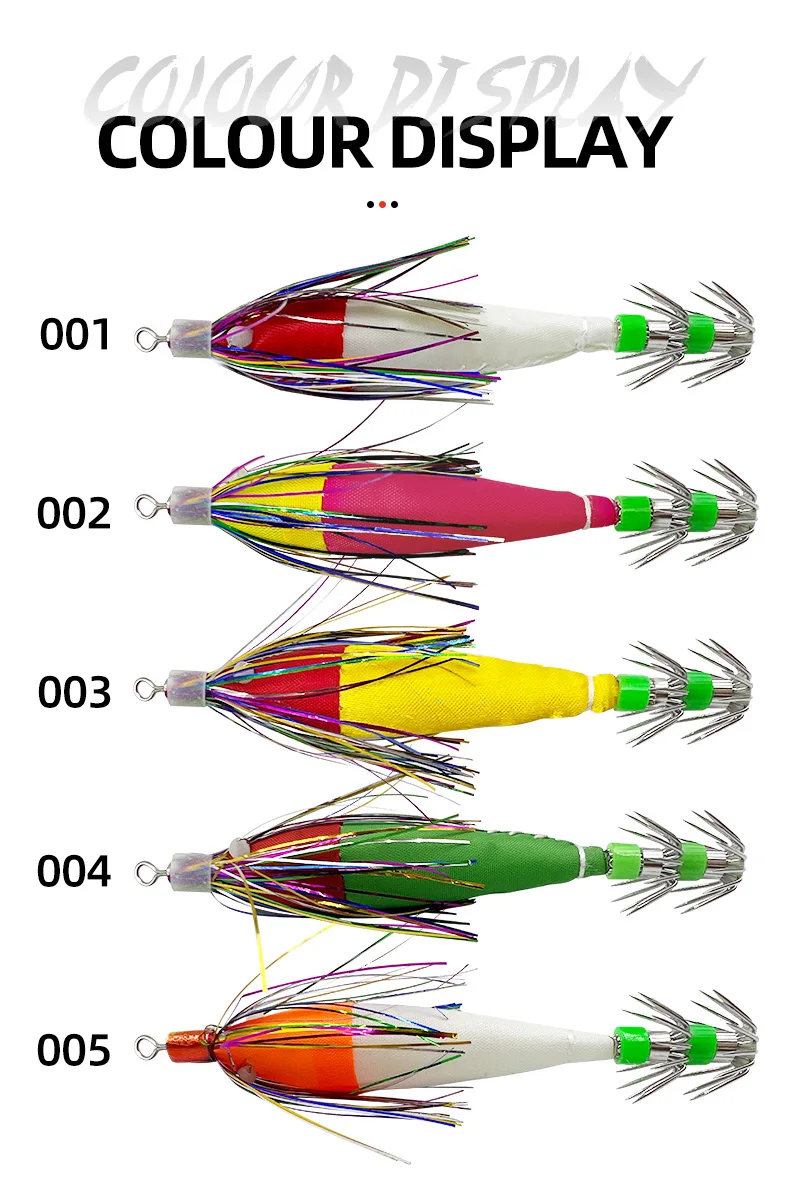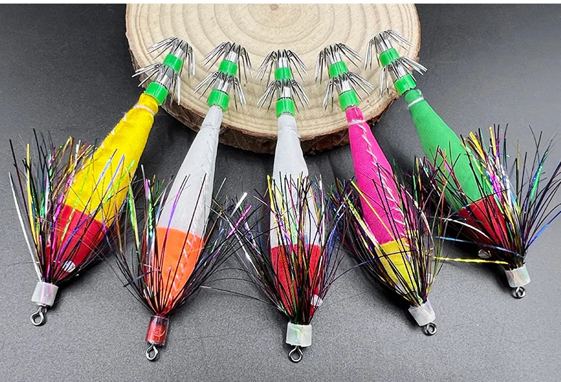 Varios señuelos multicolores para pescar calamares, anzuelos luminosos para plantilla de calamar, cebo de pesca, plantilla, pulpo, seppia, manga, señuelo de pesca