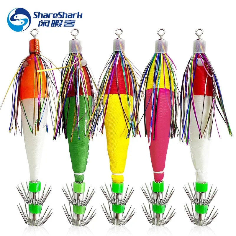 Varios señuelos multicolores para pescar calamares, anzuelos luminosos para plantilla de calamar, cebo de pesca, plantilla, pulpo, seppia, manga, señuelo de pesca