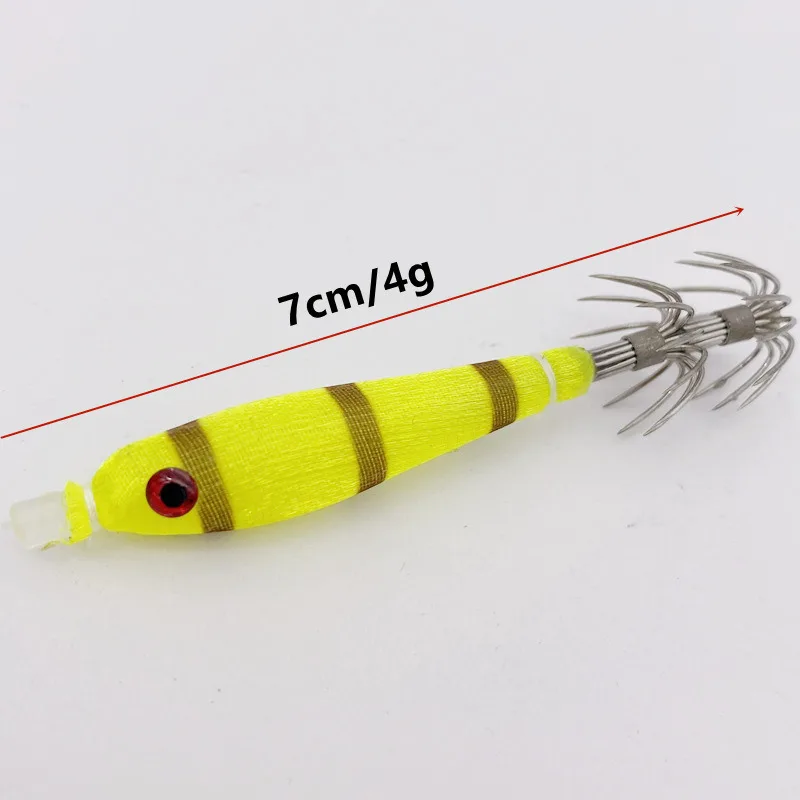 Rollo de tela luminosa de 7cm/4g, tubo de soplado UV, plantilla de pesca de pulpo, cebo de madera para camarones, anzuelo de calamar Bazooka, anzuelo de explosión de pesca, 1 Uds. * 7cm/4g