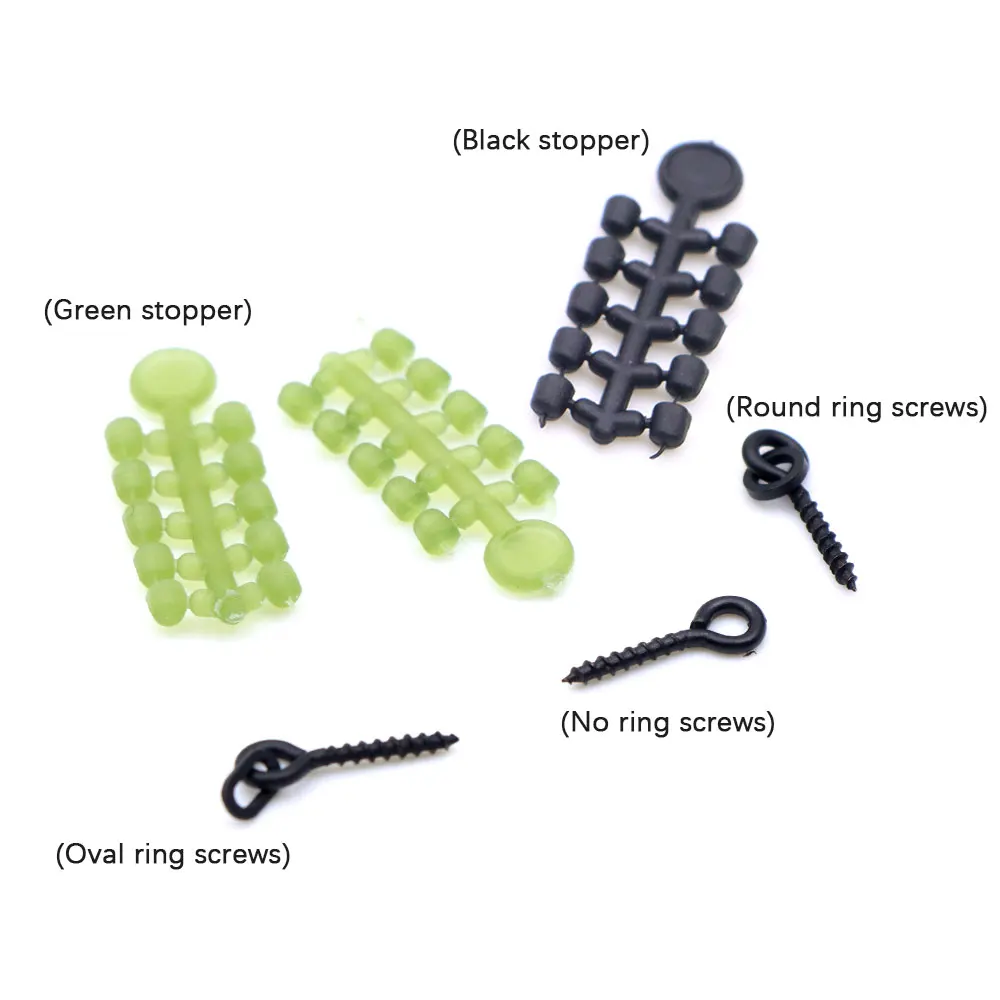 Set 1: 20pcs bait screws with round ring + 5 cards green/black stoppers