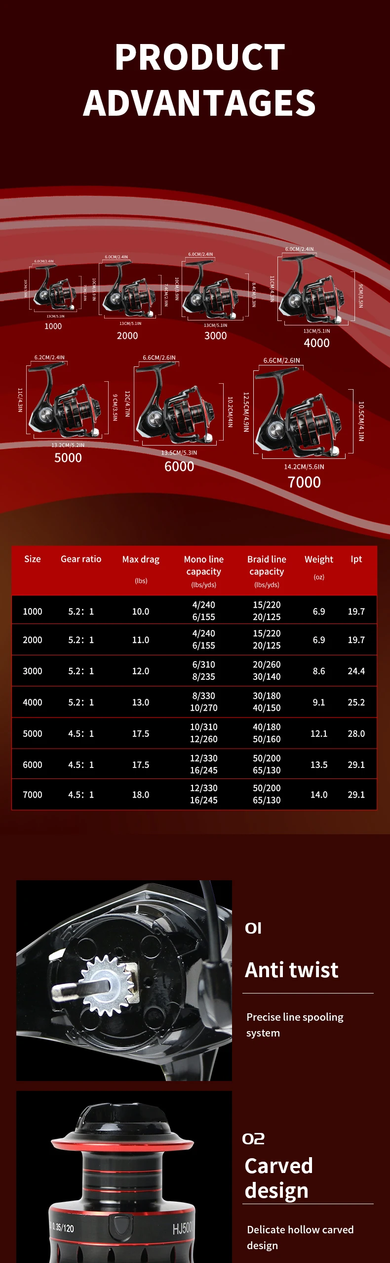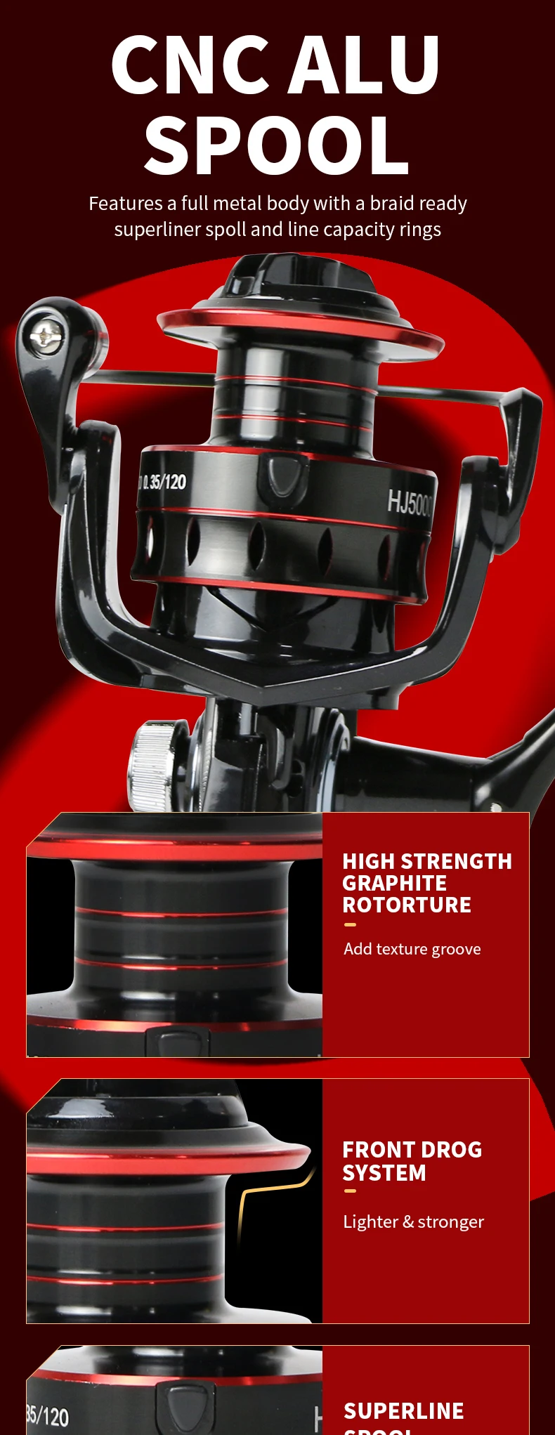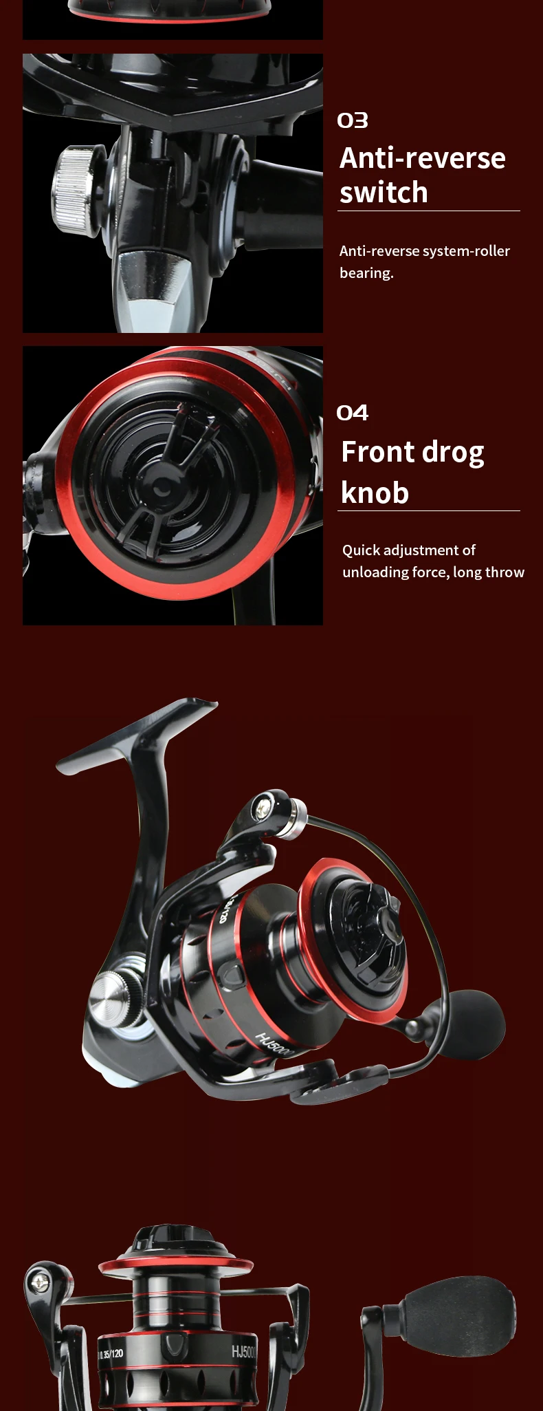 Rooblinos-carretes giratorios HJ de Metal ultraligeros, relación de transmisión 5,2: 1, Carretes de pesca de arrastre máximo de 17kg, para agua salada o dulce