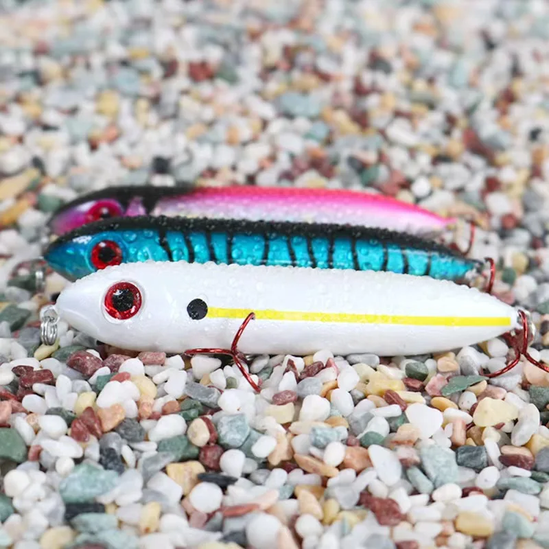 Un buen conjunto de 3 señuelos de superficie ideales tanto para la pesca en agua dulce como salada. Los anzuelos son delgados, por lo que es posible que desee cambiarlos si el señuelo se usa en agua salada. La mejor recuperación es una recuperación de "pasear al perro".