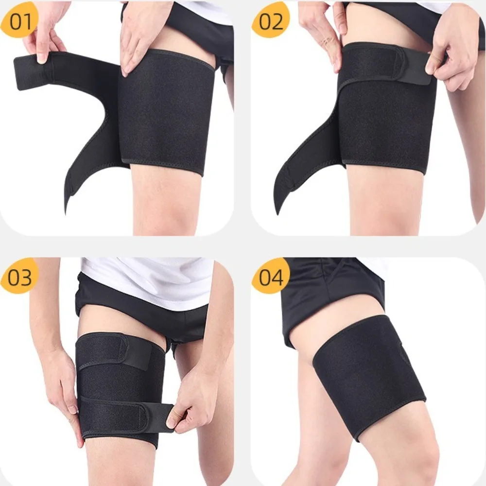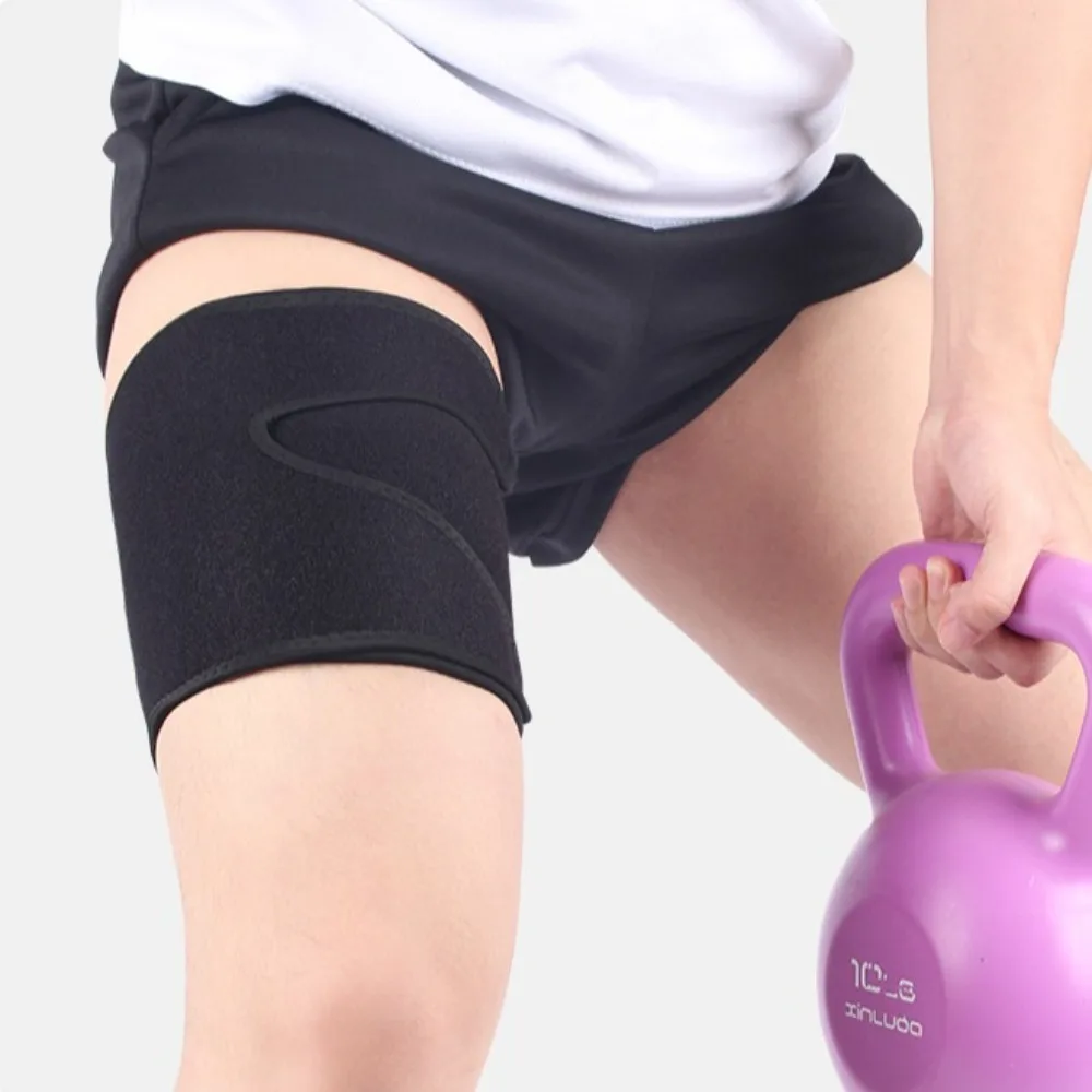 1. Tightly Wrapped: Our Thigh Brace utilizes a dual belt pressure system for optimized support, preventing muscle strain and fatigue. With its wrap-around design for a secure fit, it's ideal for different thigh sizes. Gradual pressure enhances blood flow, reducing discomfort, and promoting recovery.