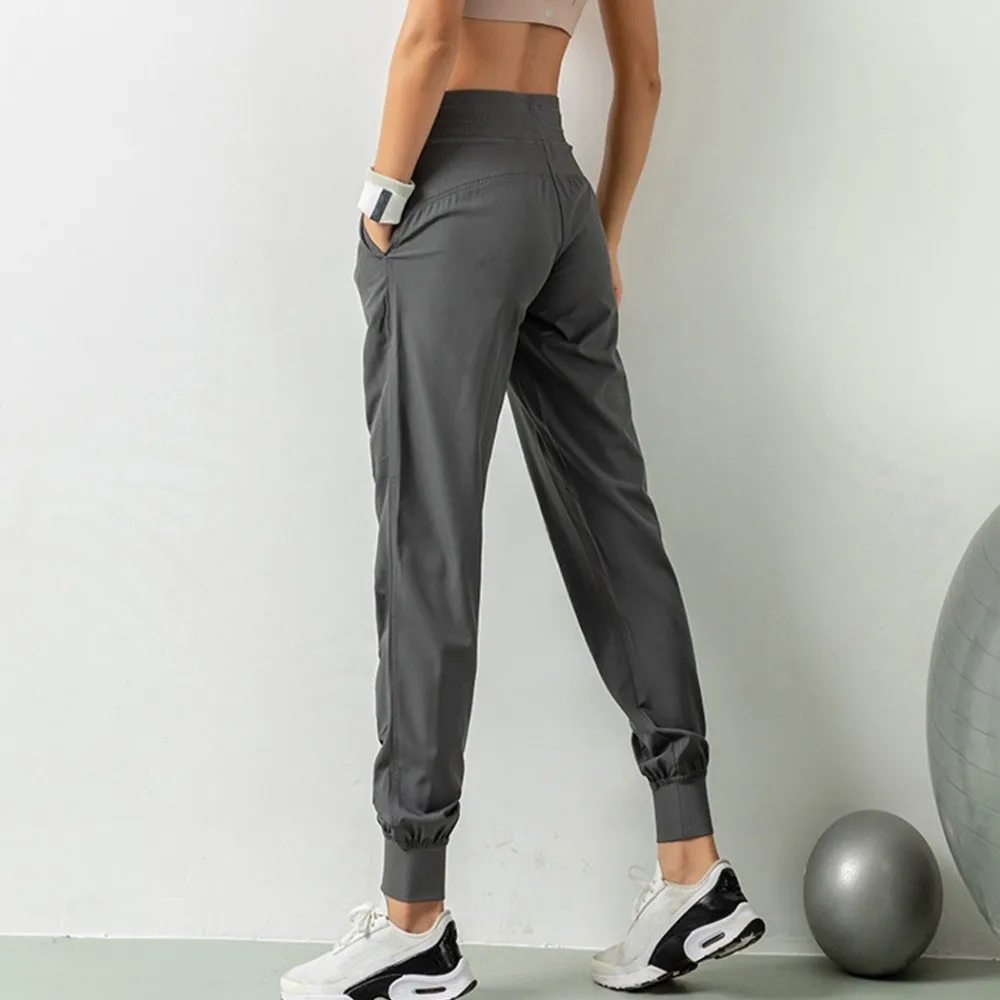 Ropa deportiva Pantalones para correr arrugados Pantalones largos cónicos de yoga Pantalones elásticos de cintura alta Fitness