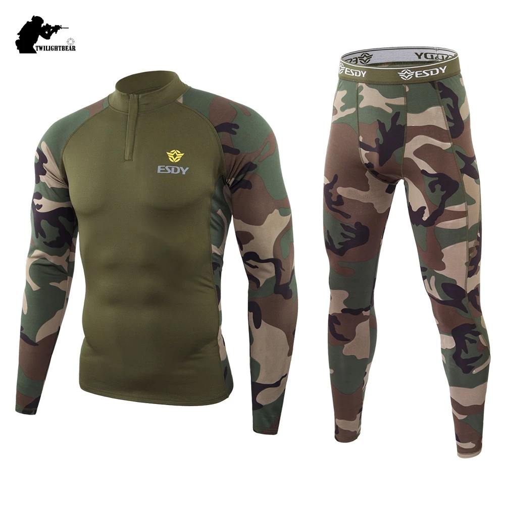 Ropa interior térmica de camuflaje para hombre, traje elástico de secado rápido, conjuntos de ropa interior cálida para deportes al aire libre, Calzoncillos largos A2F173C