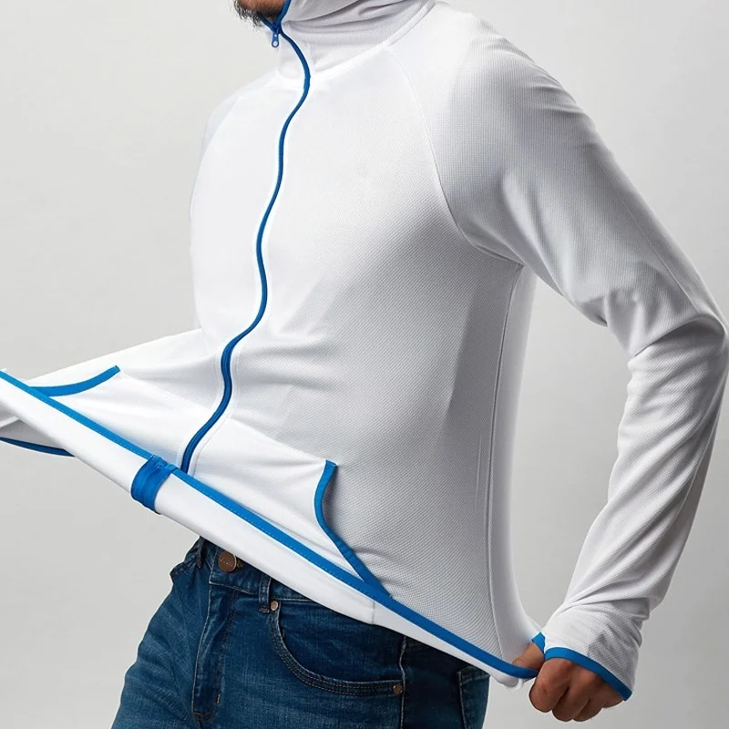 Ropa de pesca para hombre, ropa hidrofóbica tecnológica, listado de marca, informal, kleding, chaquetas con capucha para acampar al aire libre, impermeable de seda helada