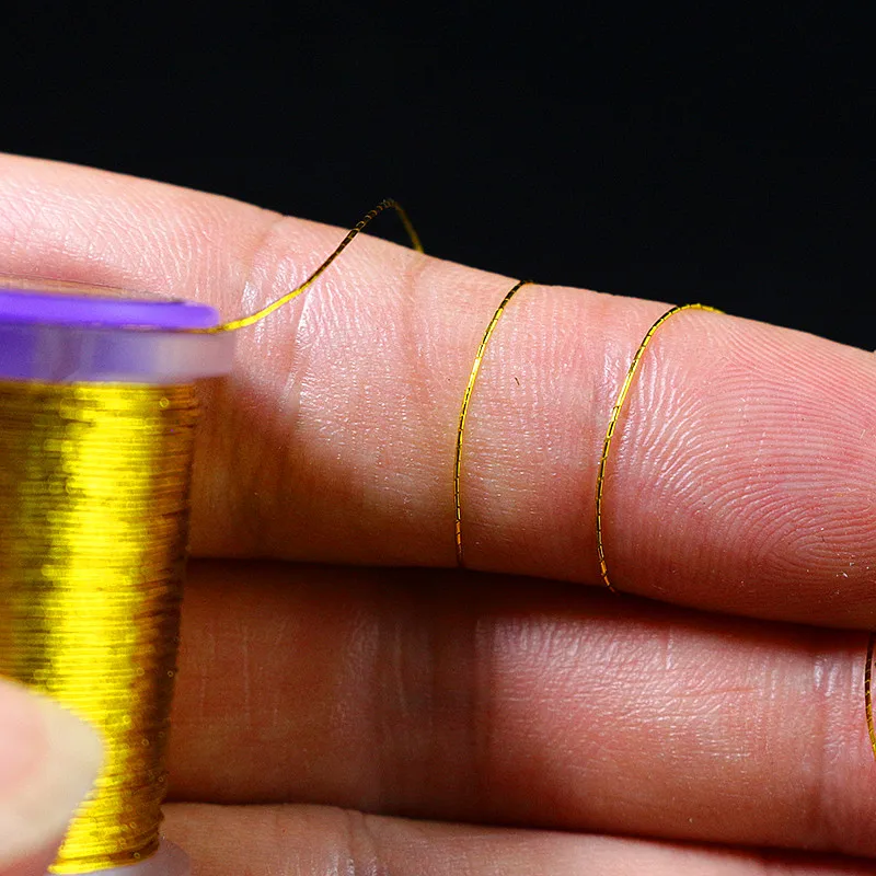 Características:Oropel metálico de alta calidad, con un fuerte núcleo de algodón, es popular para una variedad de patrones de moscas, se utiliza para acanalados en numerosos patrones de ninfas, incluida la oreja de la Hare acanalada dorada.También se utiliza para etiquetas y nervaduras en muchas moscas clásicas de salmón, moscas de cabeza de acero y moscas húmedas.Este oropel no se barnizará.