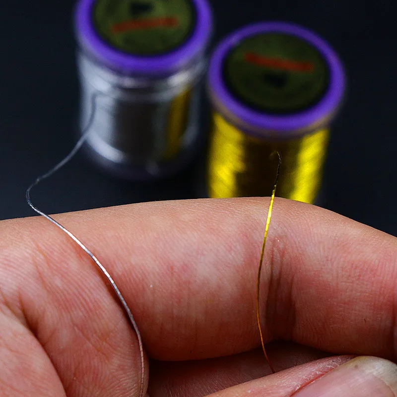 Nuevo 2 carretes de oropel ovalado de estilo francés barnizado oropel metálico oro y plata atado de mosca acanalado en ninfas material de hilo para atar moscas