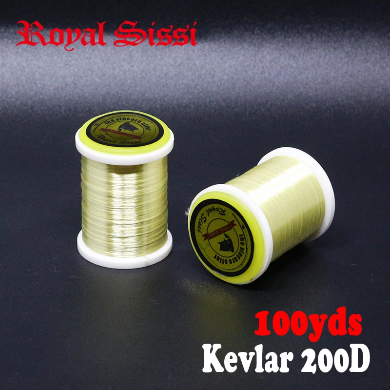 Royal Sissi 4 carretes de fibra de kevlar amarillo natural, hilo de atado de moscas plano 200D, hilo de mosca grande súper fuerte para moscas de lubina y agua salada