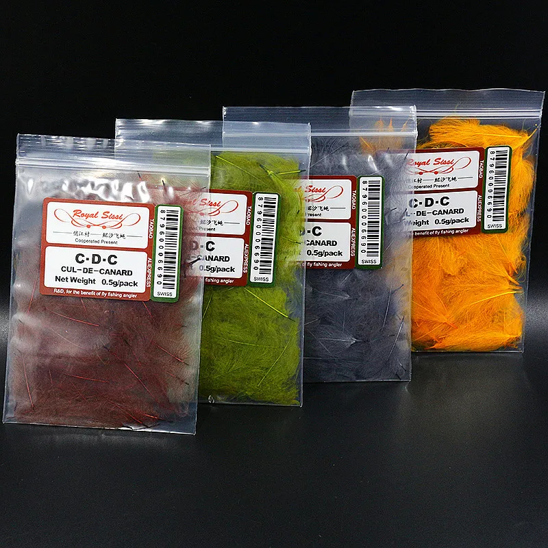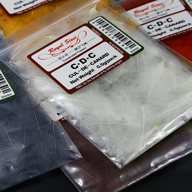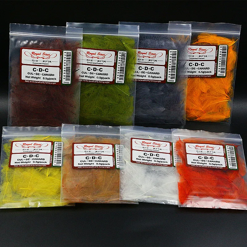 Royal Sissi 4 paquetes/set 0,5 g/paquete atado de moscas plumas CDC Cul De Canard preen glándulas flotabilidad pluma de trasero materiales para atar moscas secas