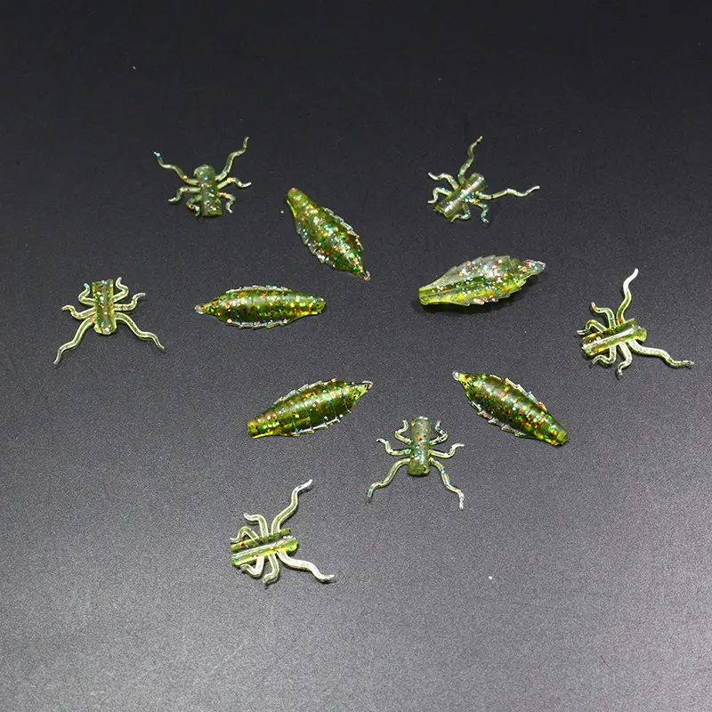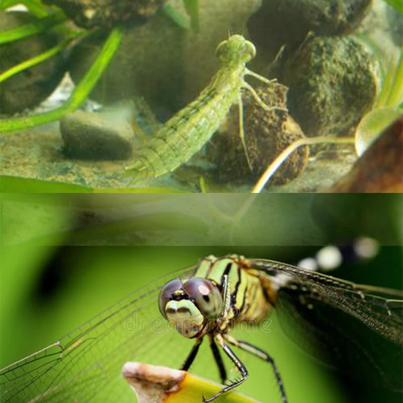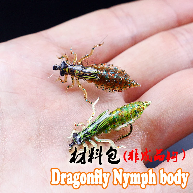 Features: artificial dragonfly nymph rubber body, with thin skin stickers and long shank nymph hooks.
