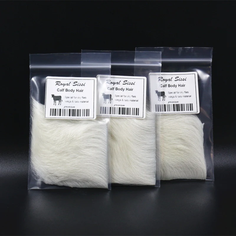 Royal Sissi-Juego de 4 parches para atar moscas, parche para el cabello con cuerpo de pantorrilla, paracaídas blanco natural, pelo de pantorrilla, alas secas para mosca, materiales para atar moscas