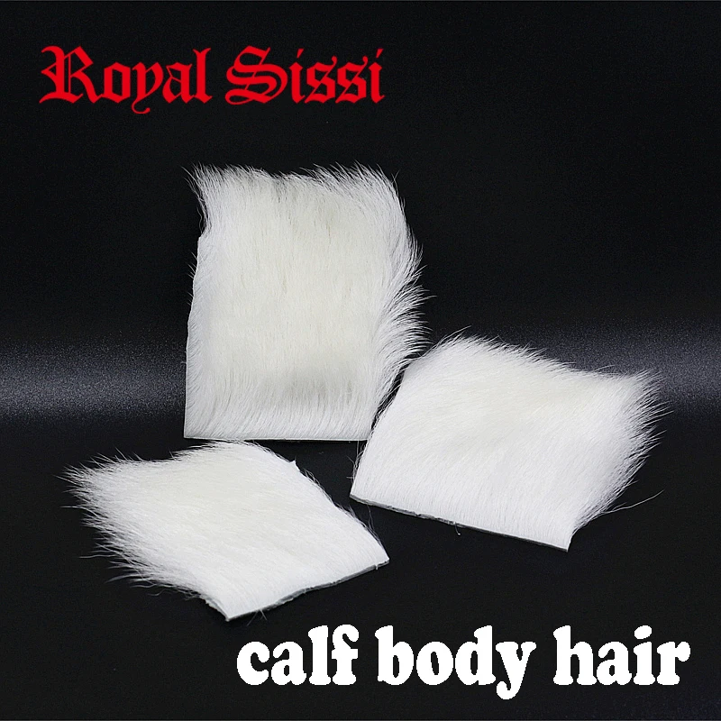 Royal Sissi-Juego de 4 parches para atar moscas, parche para el cabello con cuerpo de pantorrilla, paracaídas blanco natural, pelo de pantorrilla, alas secas para mosca, materiales para atar moscas