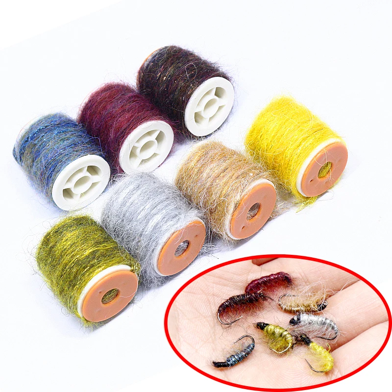 Real Sissi 7 carretes conjunto volar atando sucio bicho hilo moteado de doblaje de Caddis y stonefly Ninfa scud error cuerpo de atar materiales