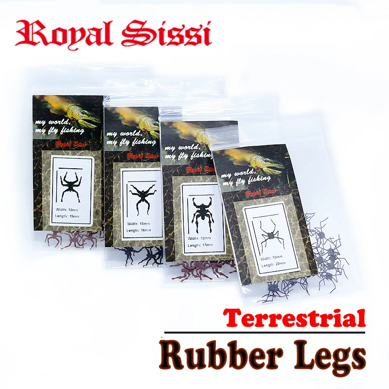 Materiales para atar moscas calientes Royal Sissi, 4 estilos opcionales, patas de goma de insectos terrestres realistas, paquete de 20 piezas, señuelo de pesca de trucha suave
