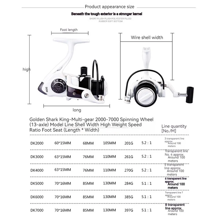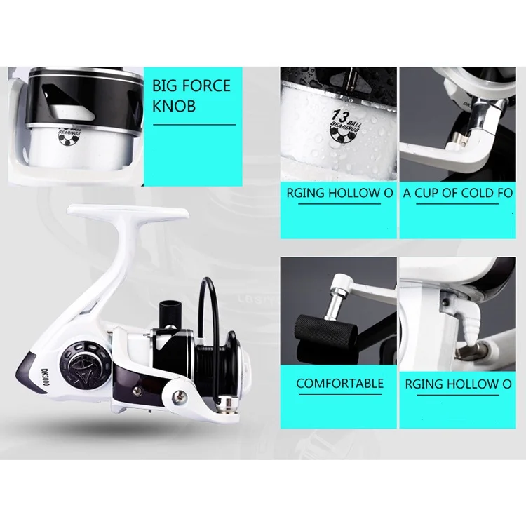 (3) Material PA66 de grado de aviación de alta resistencia, material de metal de cubierta decorativa, más propicio para proteger la rueda de pesca.