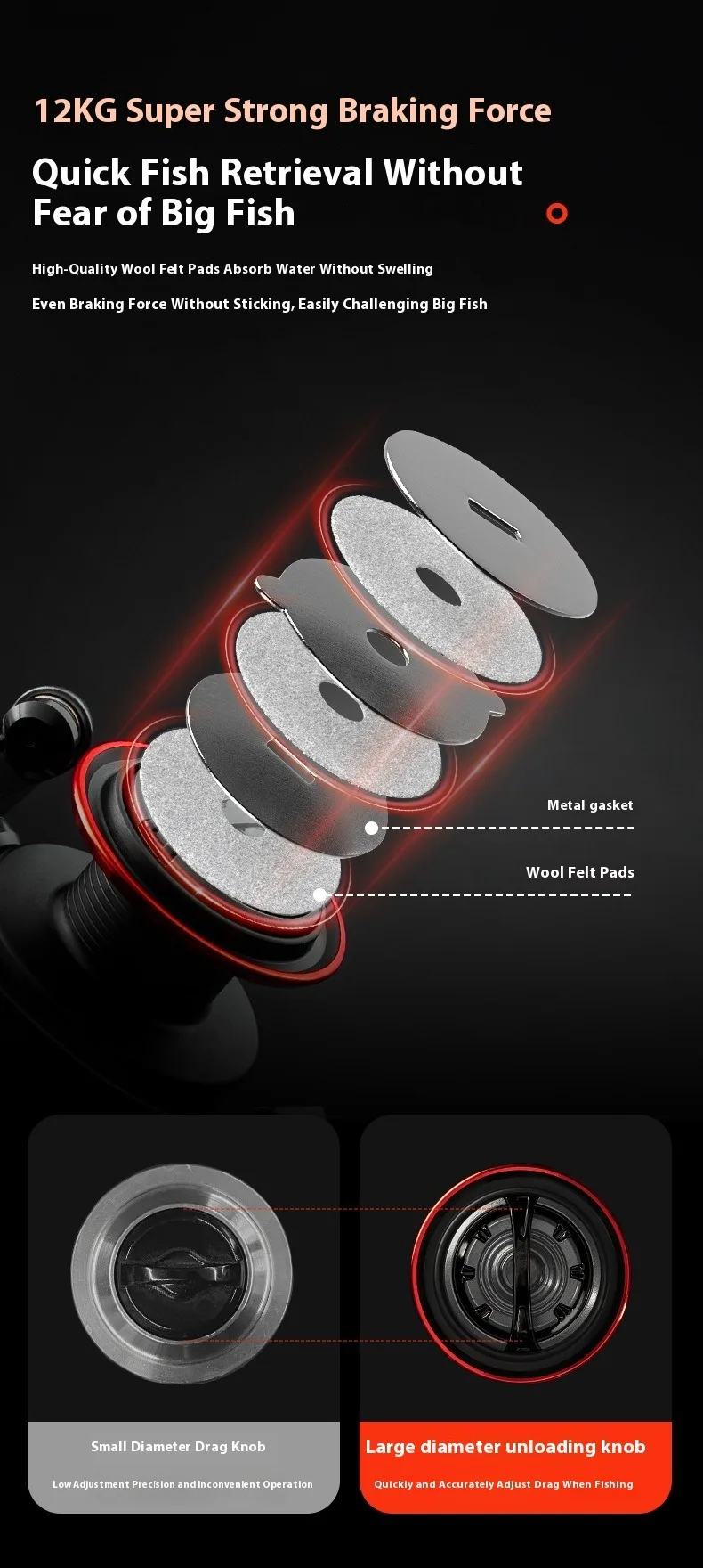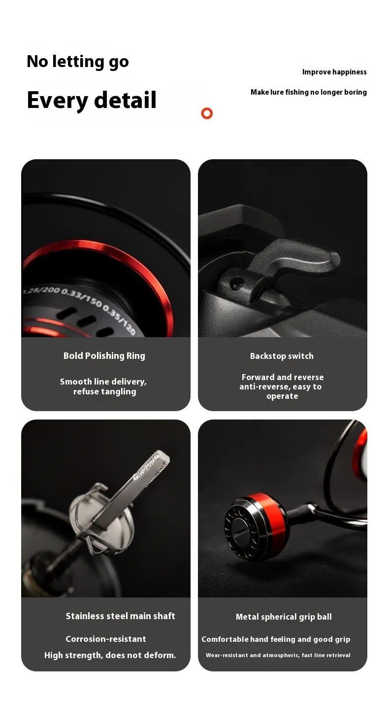 Rueda giratoria sin costuras Luya, rueda de pescado con copa de alambre totalmente metálico, rueda de poste de mar de lanzamiento de largo alcance, rueda de sedal de pesca