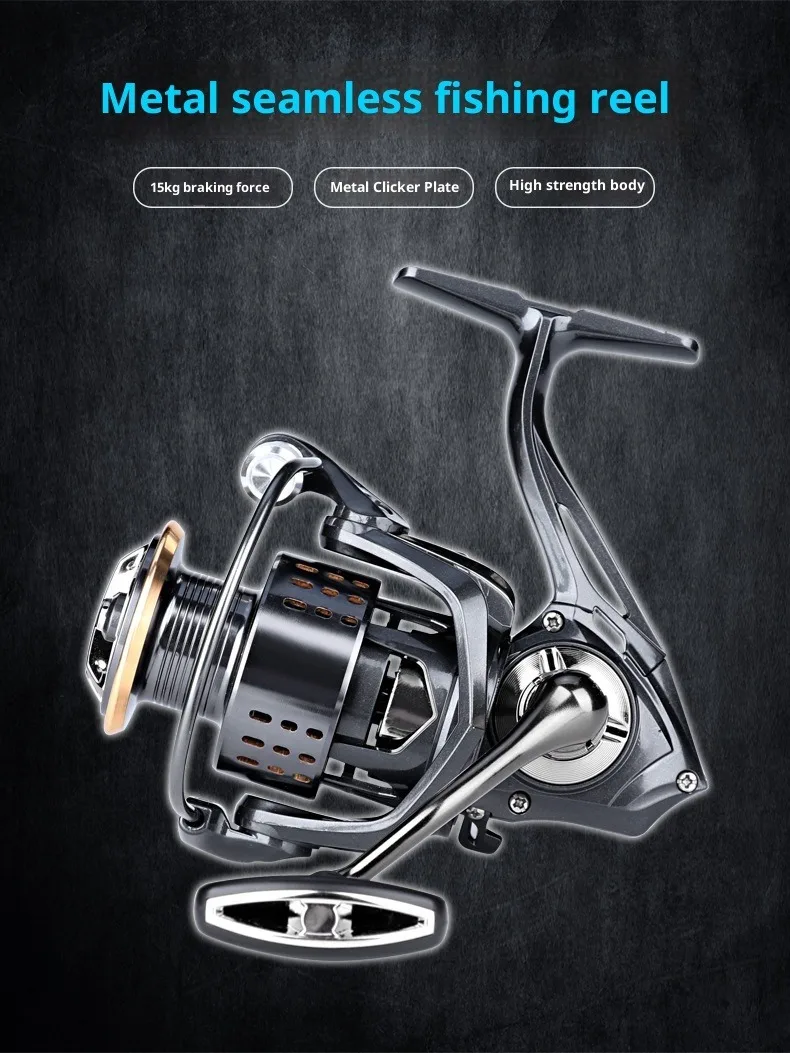 Rueda giratoria sin costuras, rueda de hilo de pescar totalmente de metal, rueda de pesca de lanzamiento de largo alcance, rueda de pesca con señuelo versátil