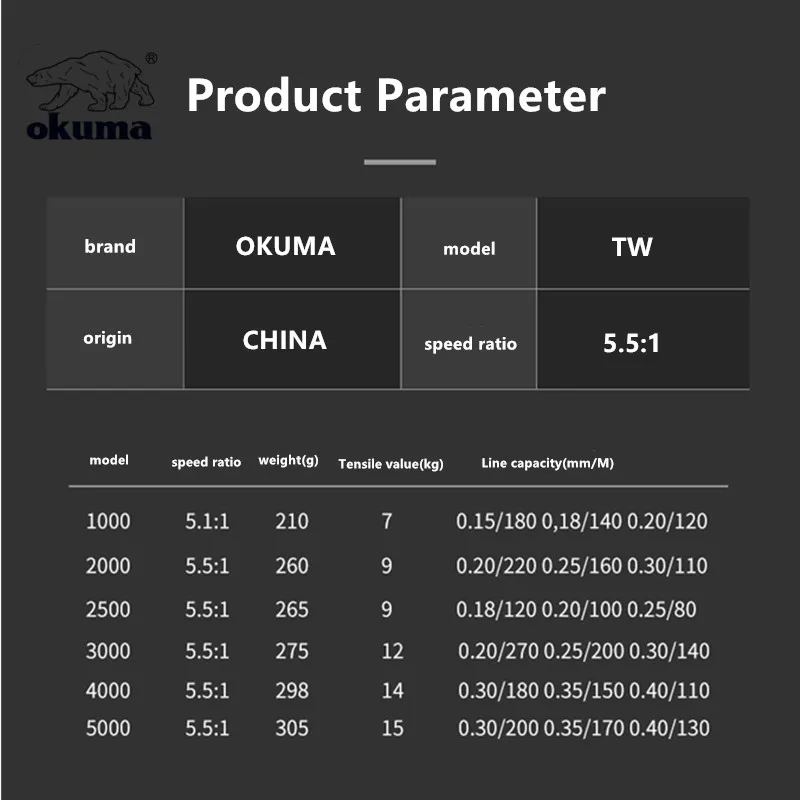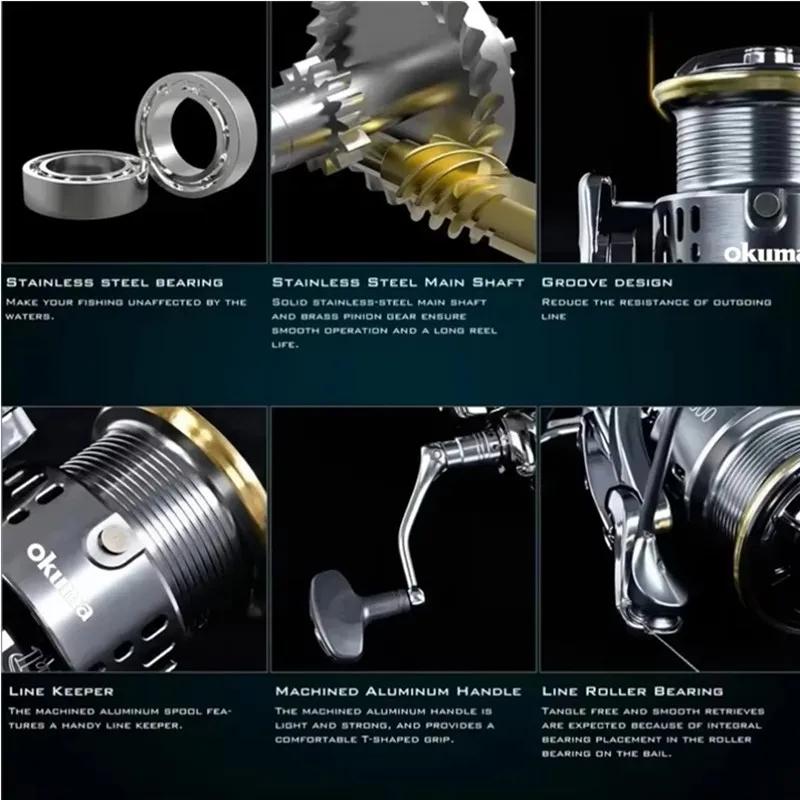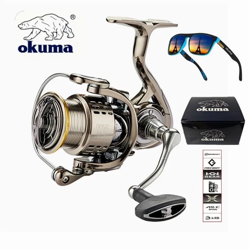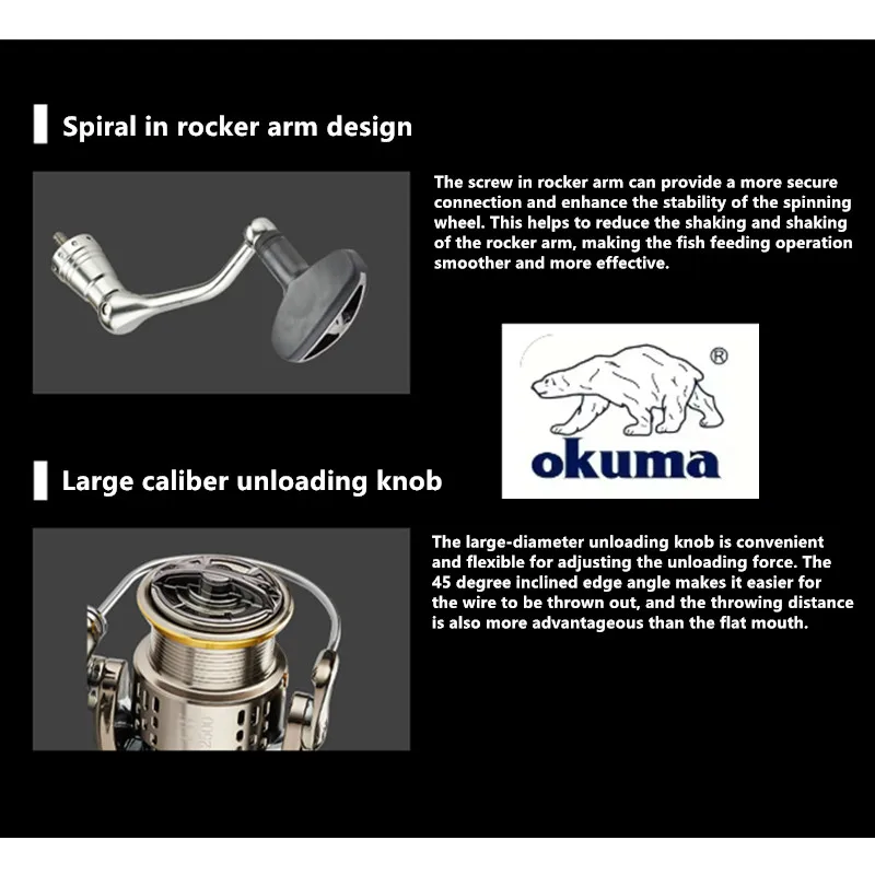 Rueda giratoria Okuma serie 1000-5000TW tornillo totalmente metálico en rueda de pesca, equipo de pesca de largo alcance Luya