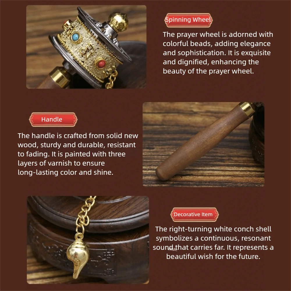 Alloy material: The prayer wheel is made of alloy material, bringing texture and durability to your spirit.