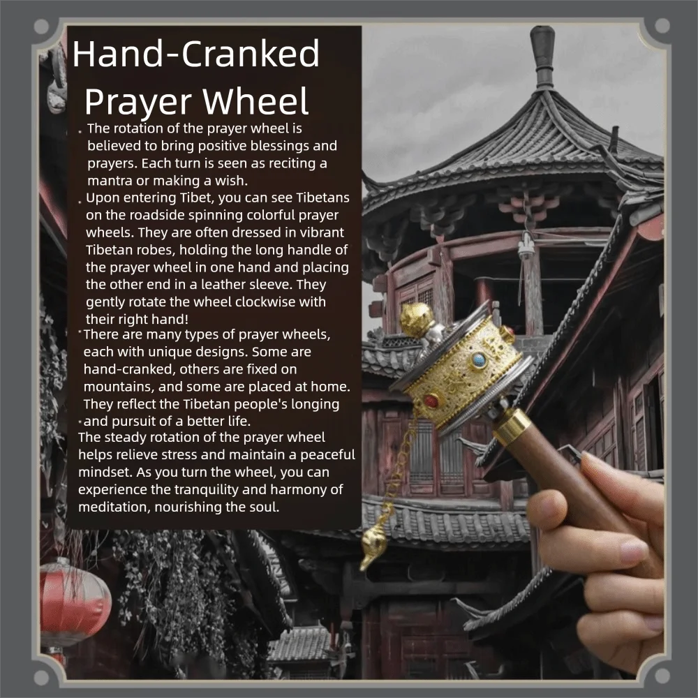Hand cranked design: The hand cranked design does not require batteries or electricity, allowing you to use the prayer wheel anytime, anywhere.