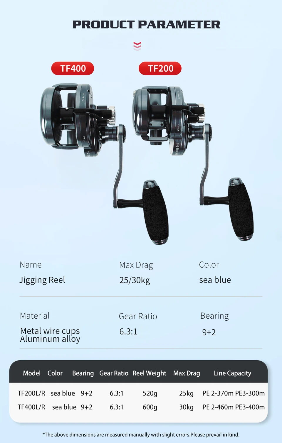 Asiento de carrete con perilla de corcho/Eva, rueda de pesca 9 + 2Bb 6,3: 1, arrastre máximo de 30Kg, equipo de pesca de mar de Metal, carrete de Jigging de agua salada de paso lento