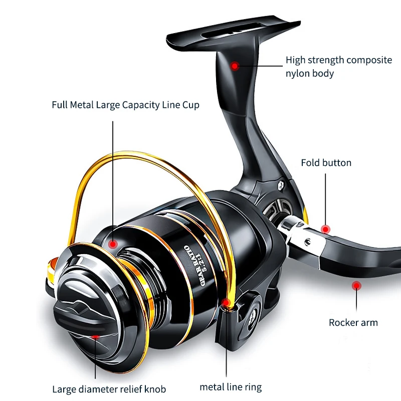 Rueda de pesca Carrete Baitcasting de oro negro múltiples modelos Brazo basculante Relación de velocidad de rotación 5,2:1 mango izquierdo/derecho