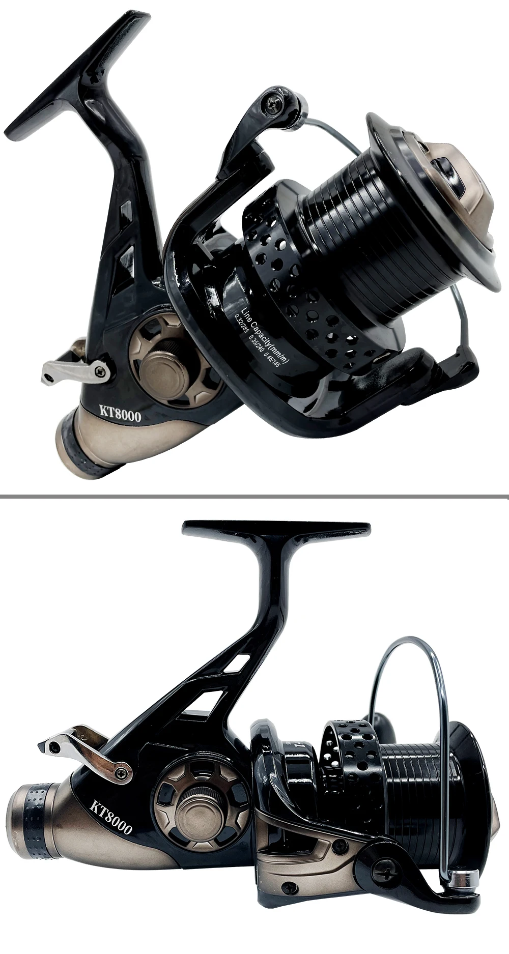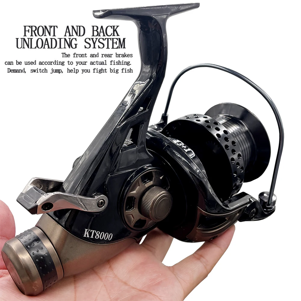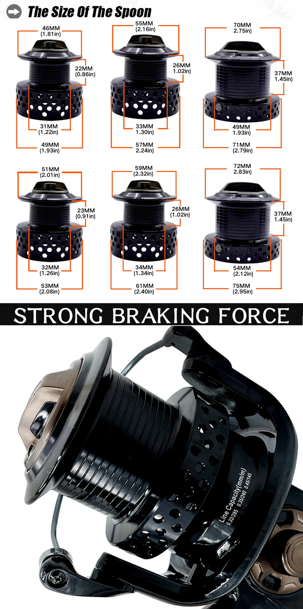 Información básicaTipo de carrete: carrete de freno doble delantero y traseroCarrete: MetalBrazo de roca: Metal, intercambiable izquierda y derechaRelación de transmisión: 5,0: 1/5,2: 1/4,1: 1Rodamiento de bolas: 13 + 1BBPotencia máxima de arrastre: 13-23KGEstructura: rodamiento unidireccional sin marcoAdecuado: peces medianos y grandes3000, 4000, 5000, 6000 son carretes de freno delanteros y traseros giratorios7000 y 8000 están lanzando carretes de freno delanteros y traserosPaquete incluido1 carrete de pesca