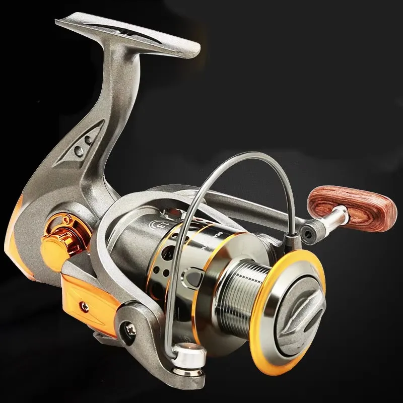 Rueda de pesca Rueda giratoria 4000 Plata Impulso de madera Equipo de pesca para agua salada o agua dulce