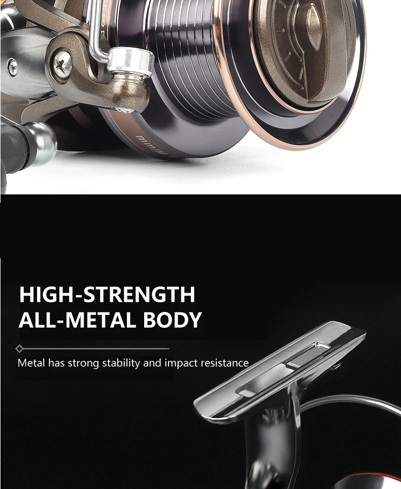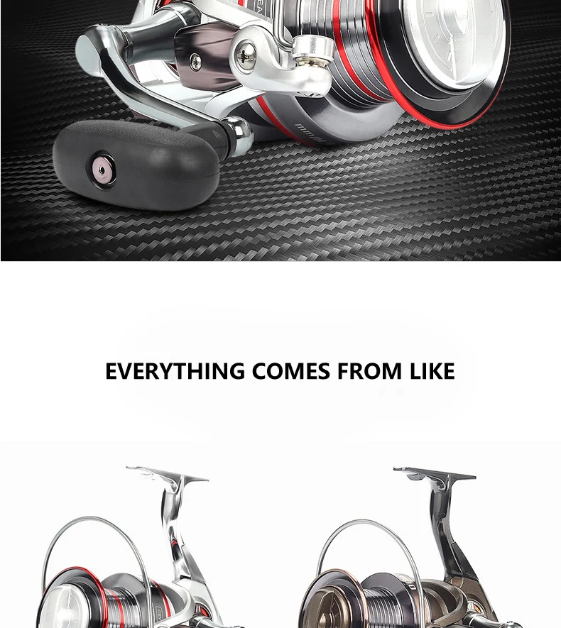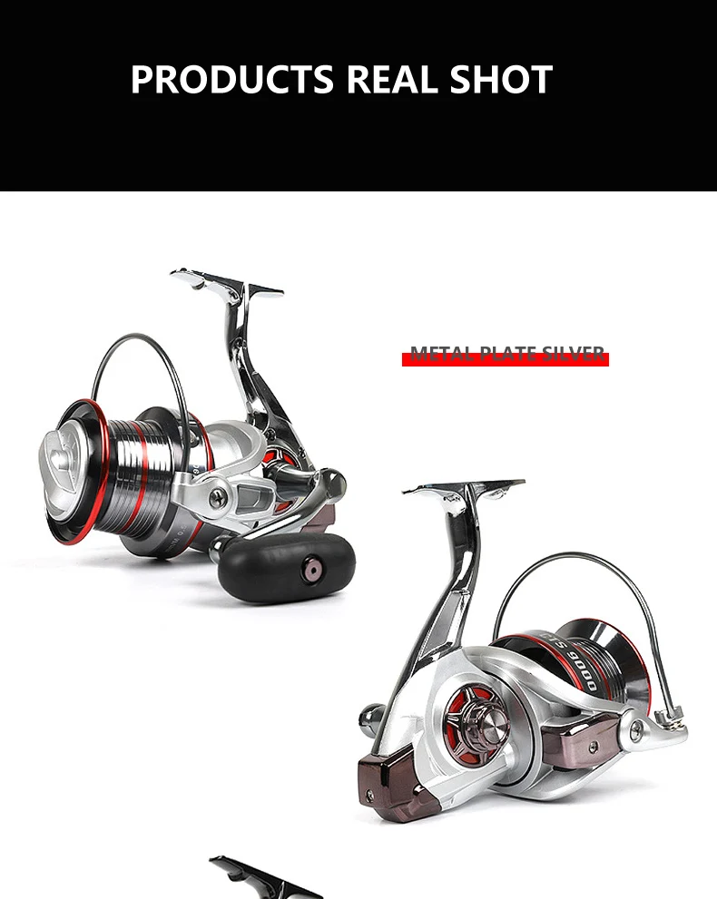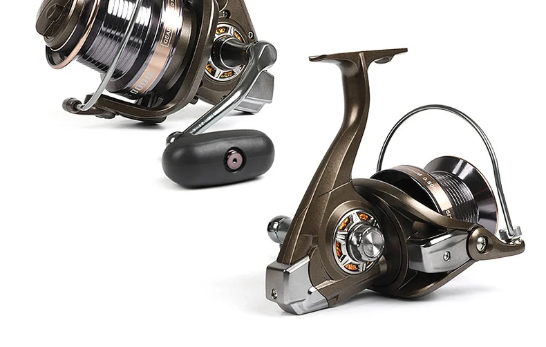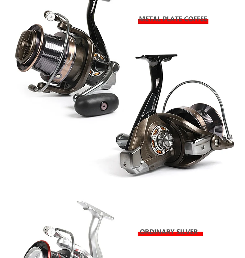 Nuevo carrete de pesca con diseño de freno doble, alimentador de pesca de carpa súper fuerte, carrete giratorio, rueda giratoria tipo rueda de pesca MG