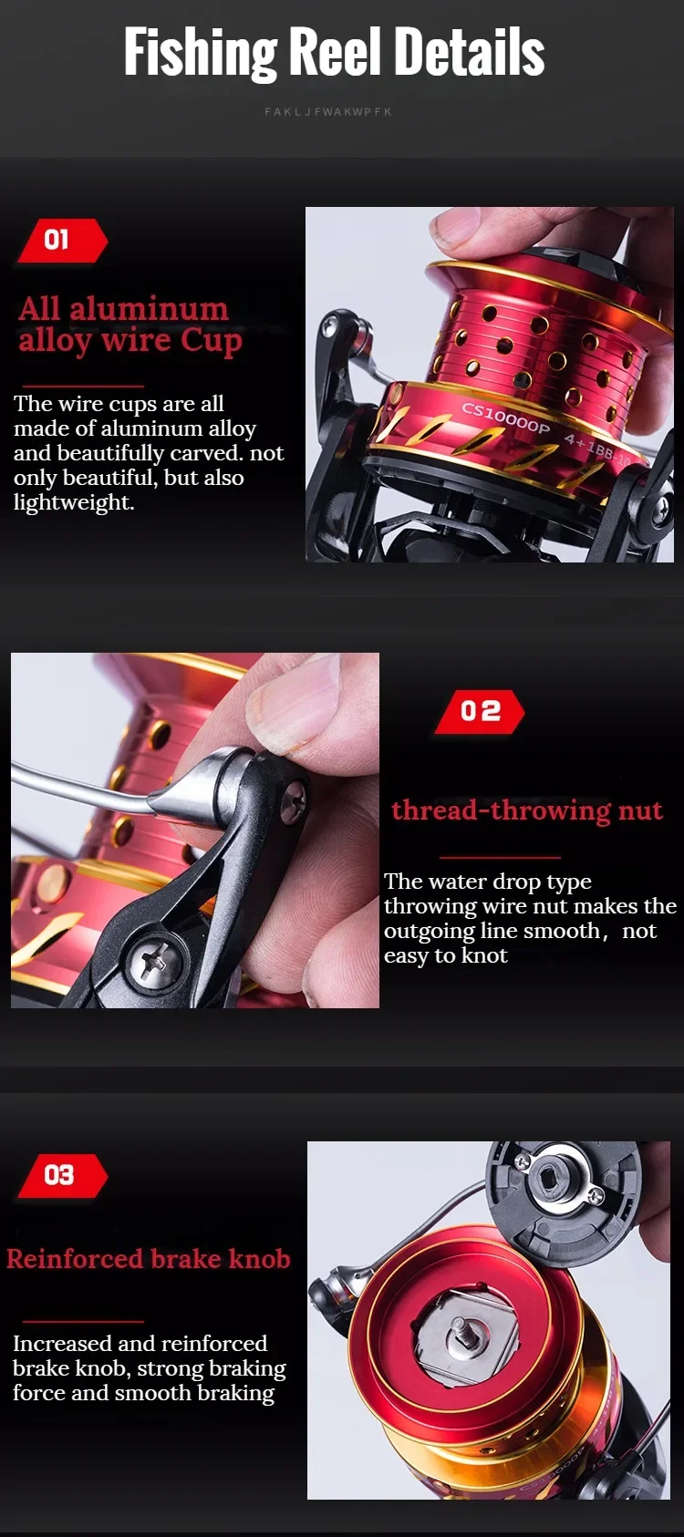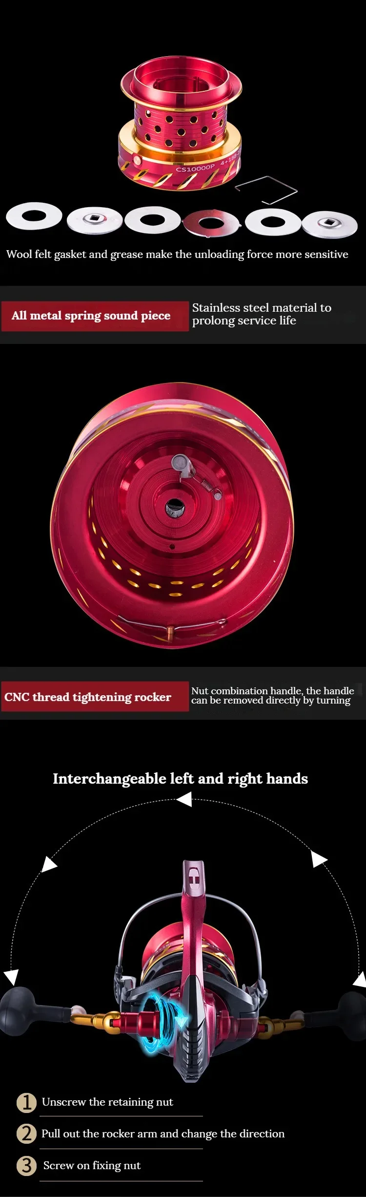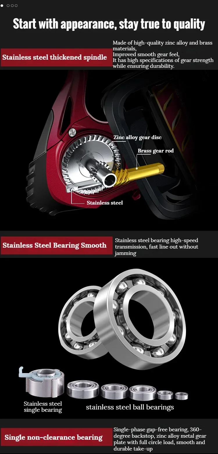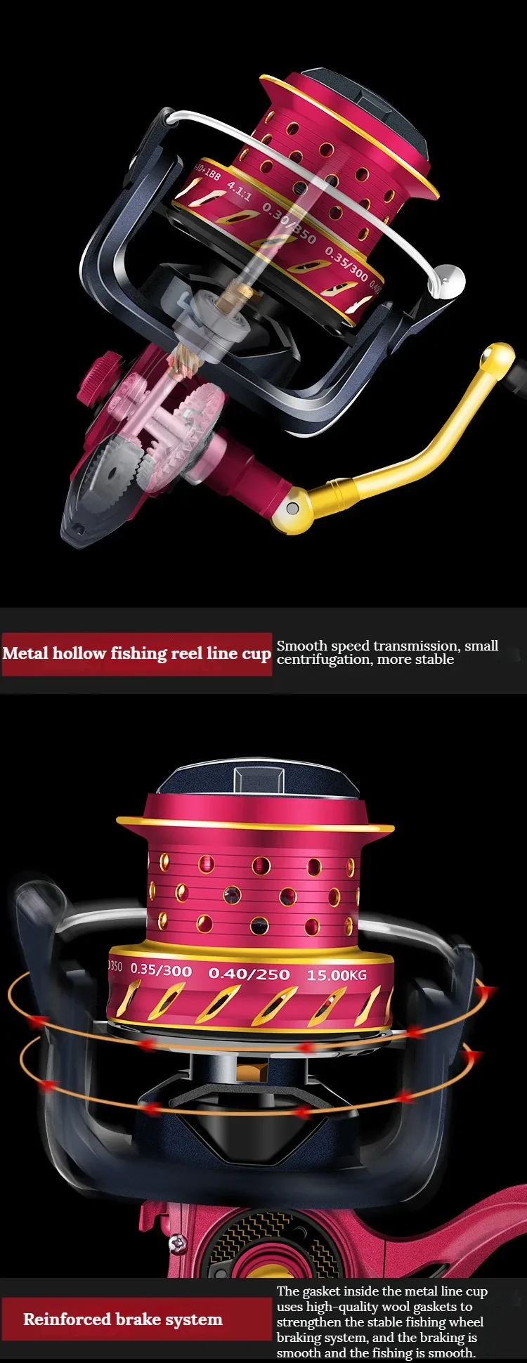 【Sistema de frenado reforzado】 La Junta dentro de la Copa de la línea de metal utiliza juntas de lana de alta calidad para fortalecer el sistema de frenado estable de la rueda de pesca, y el frenado es suave y el pez es suave.