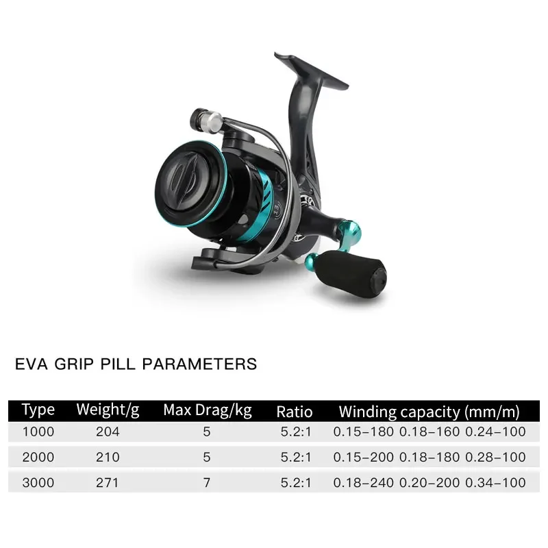 Rueda de pesca SpinningLightweight EVA mango carrete de pesca de carpa rueda DK azul negro serie 1000-3000